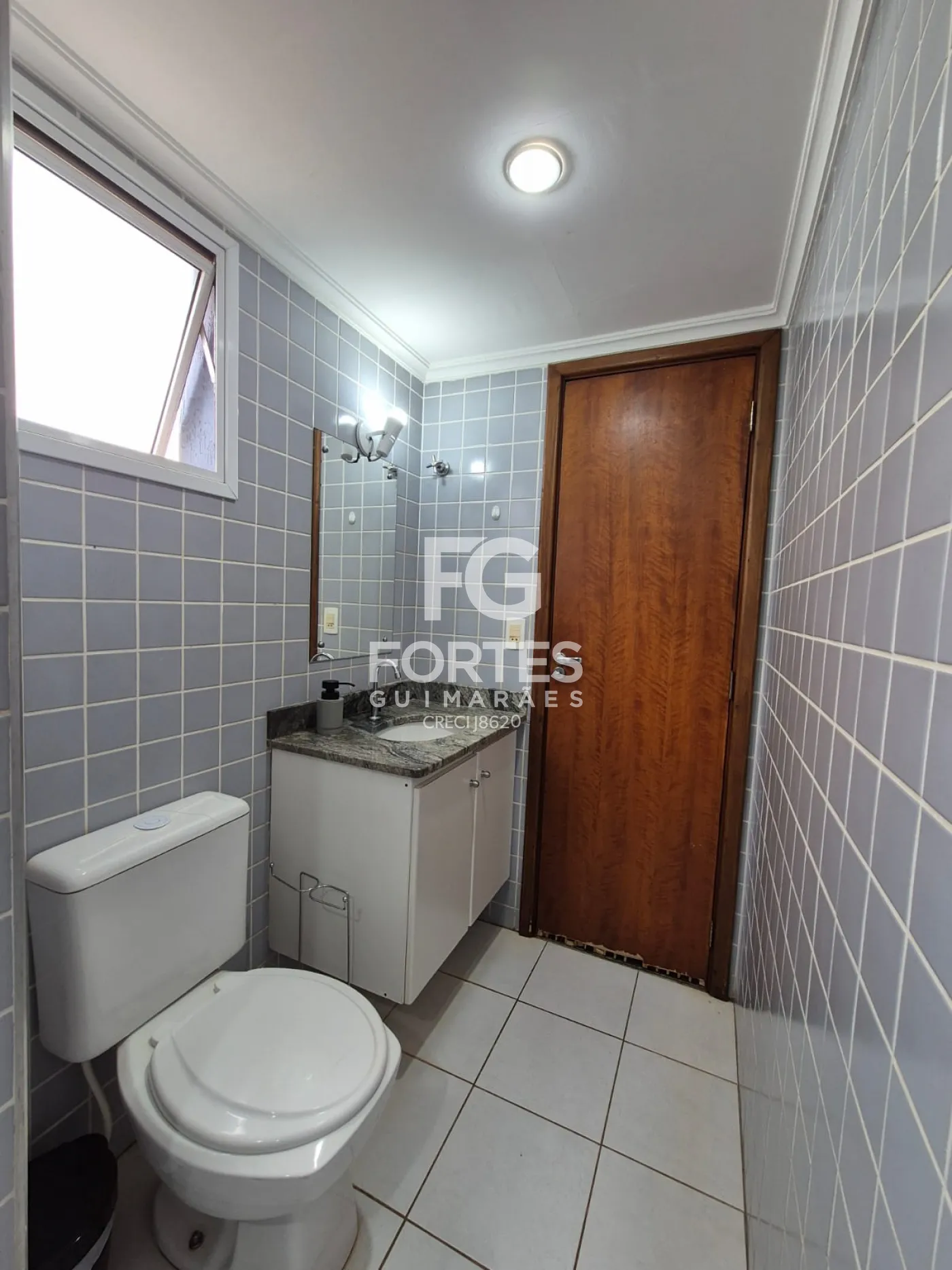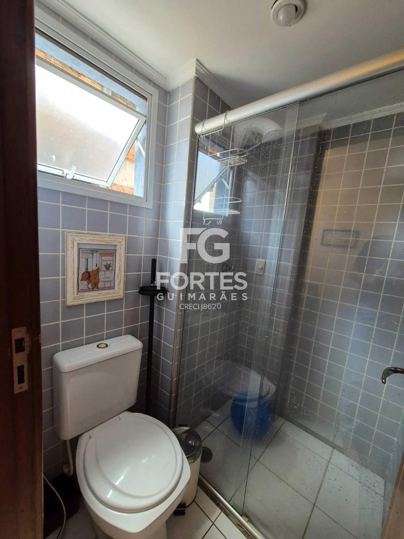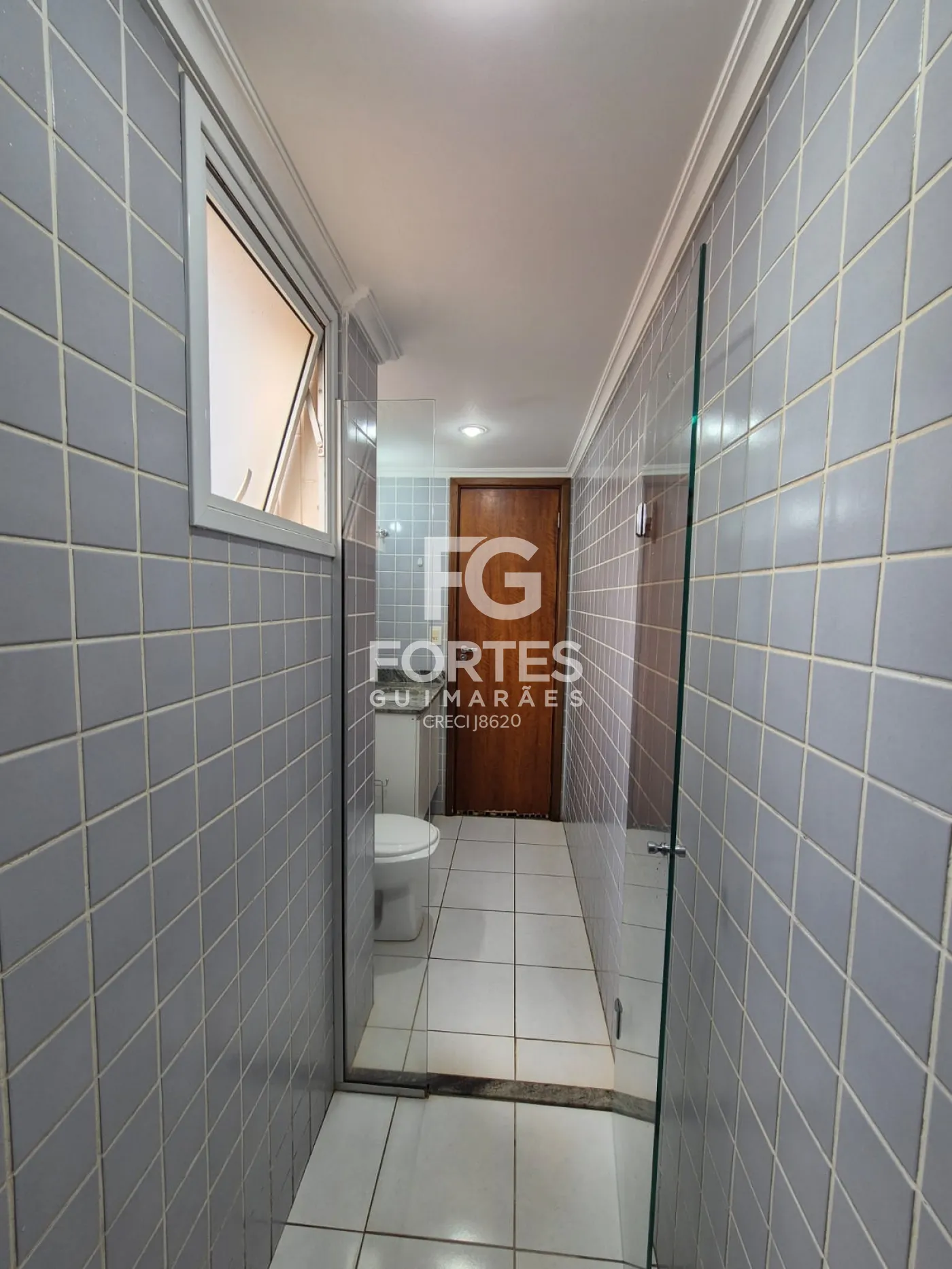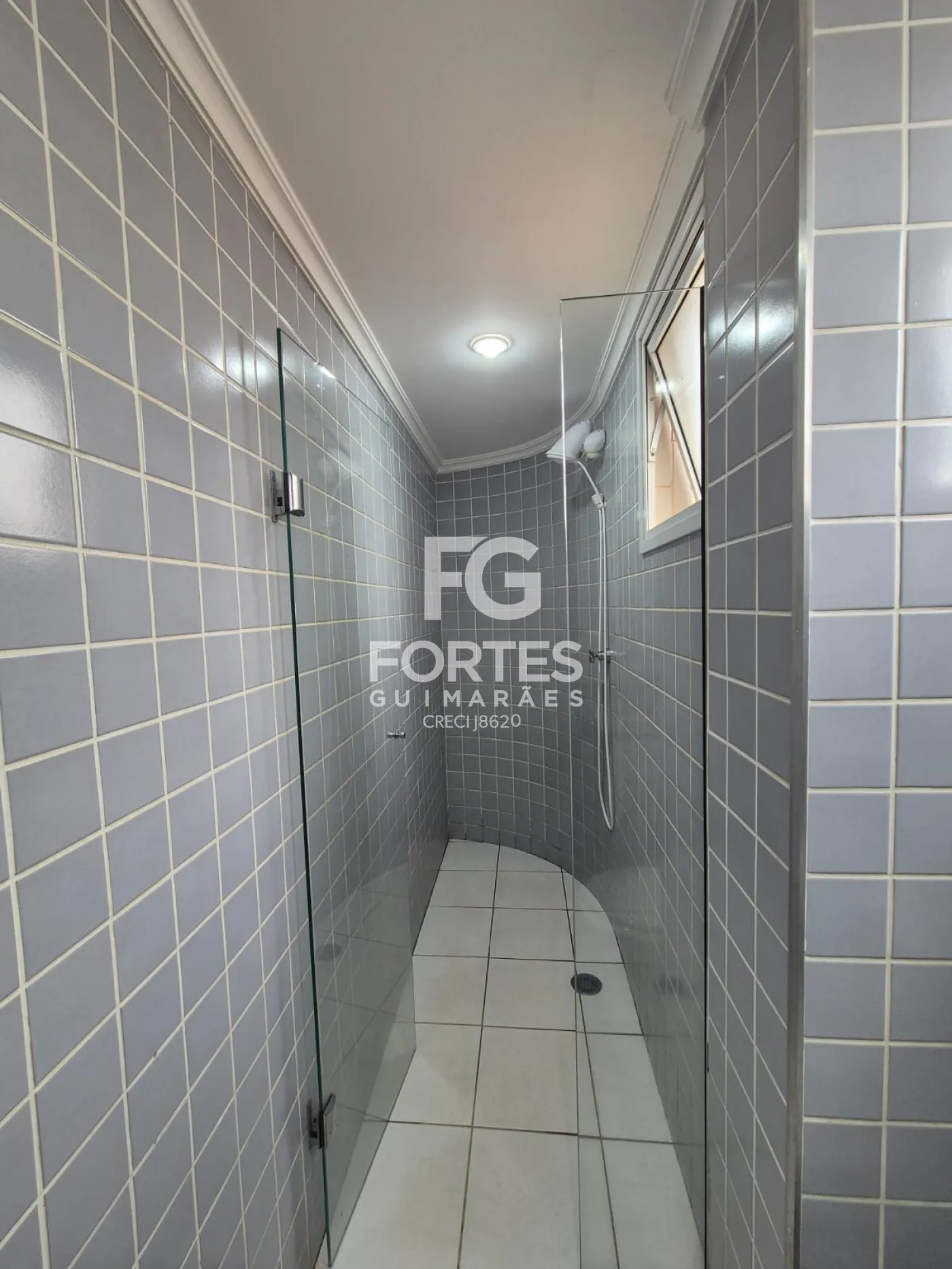 - Banheiro com gabinete, espelho, box e chuveiro;