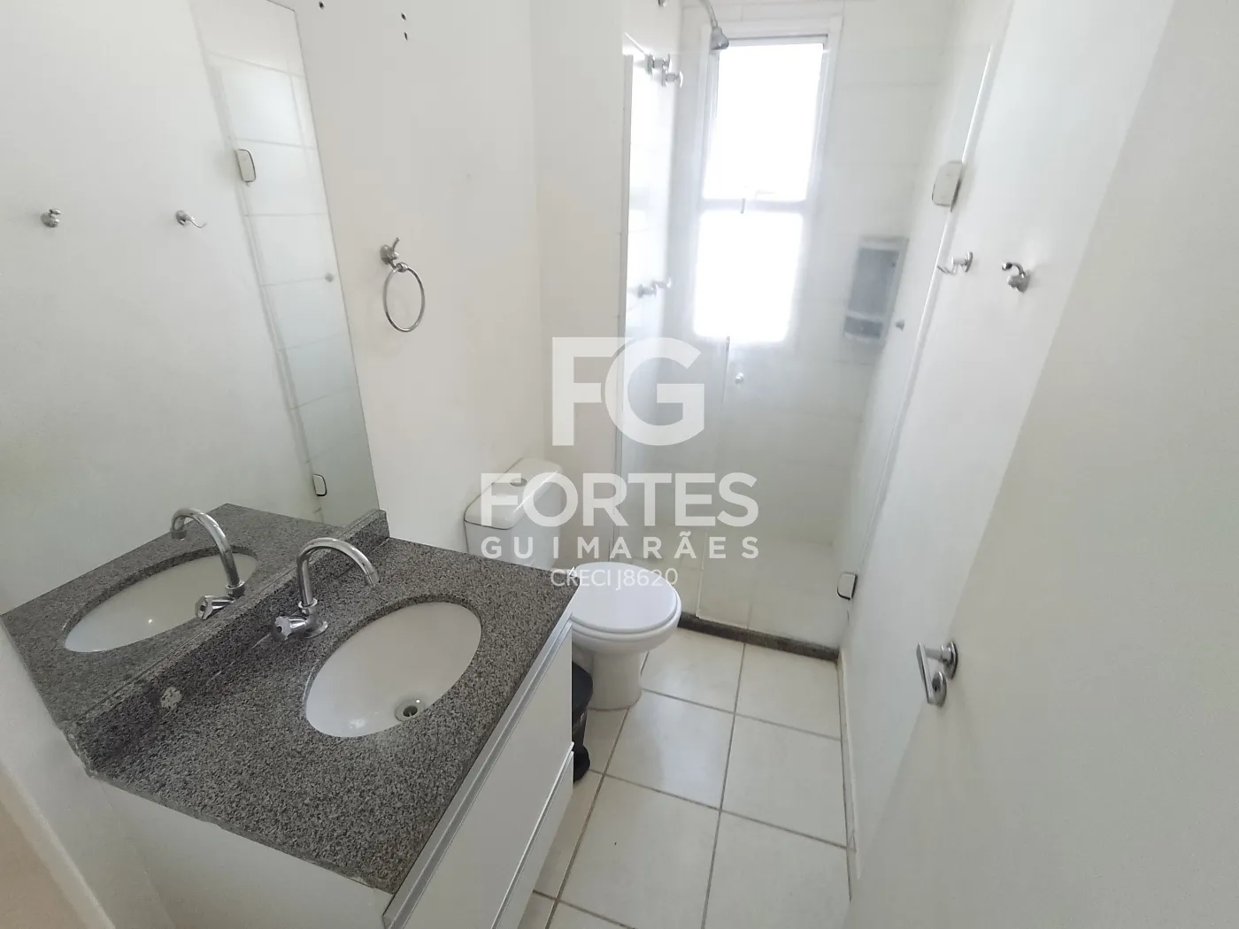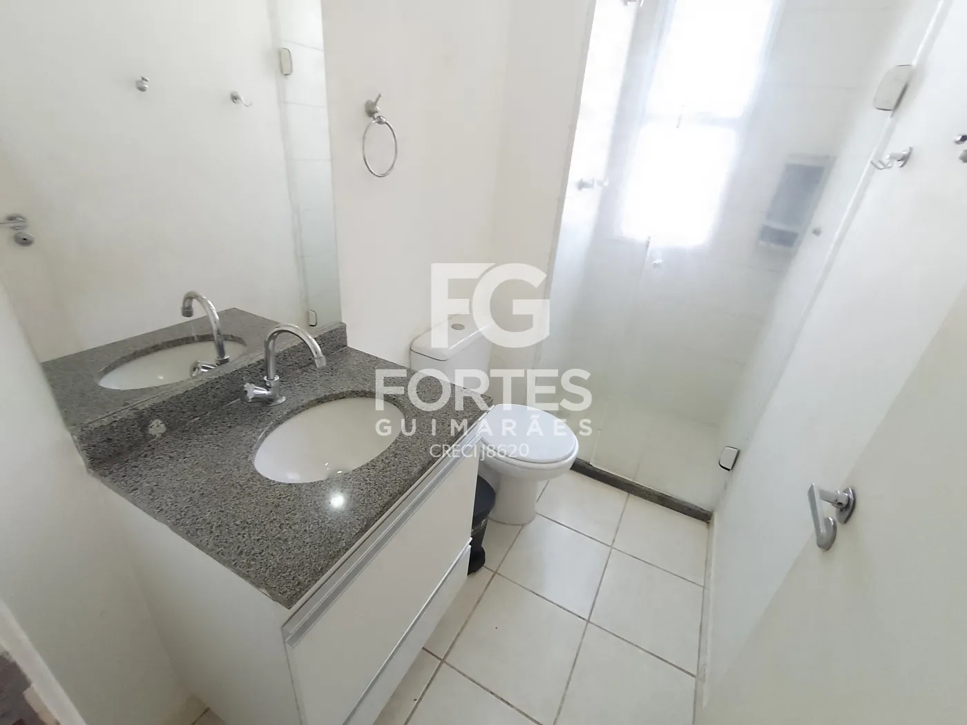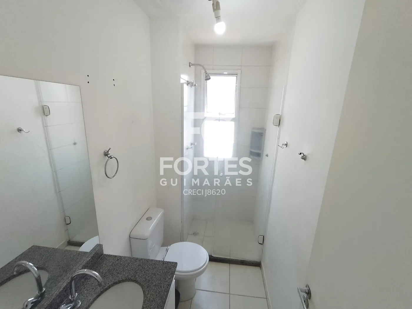- 01 Banheiro com box em vidro, gabinete, chuveiro com aquecimento de água a gás, ducha higiênica e espelho.