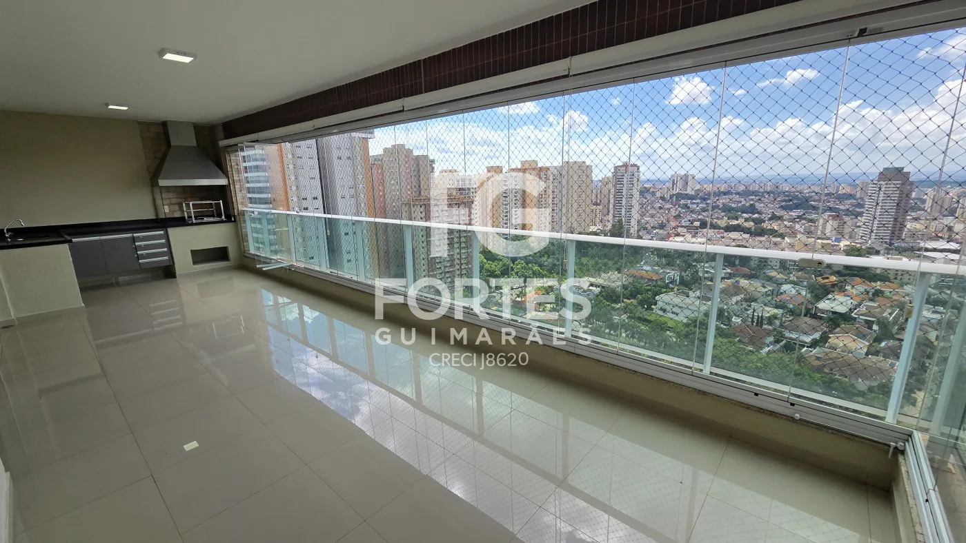 - Varanda gourmet com fechamento em vidro, vista livre, churrasqueira, pia e gabinete