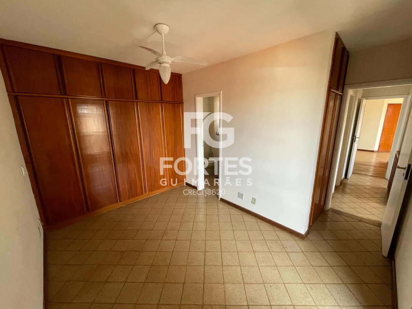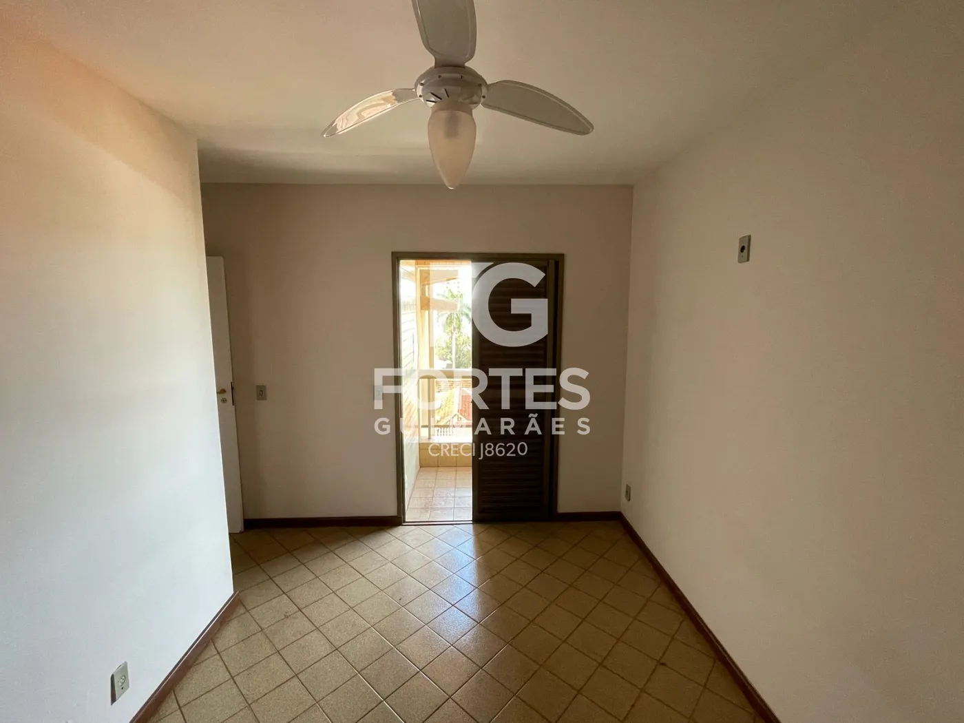 - 1 Suíte com ventilador de teto e sacada.