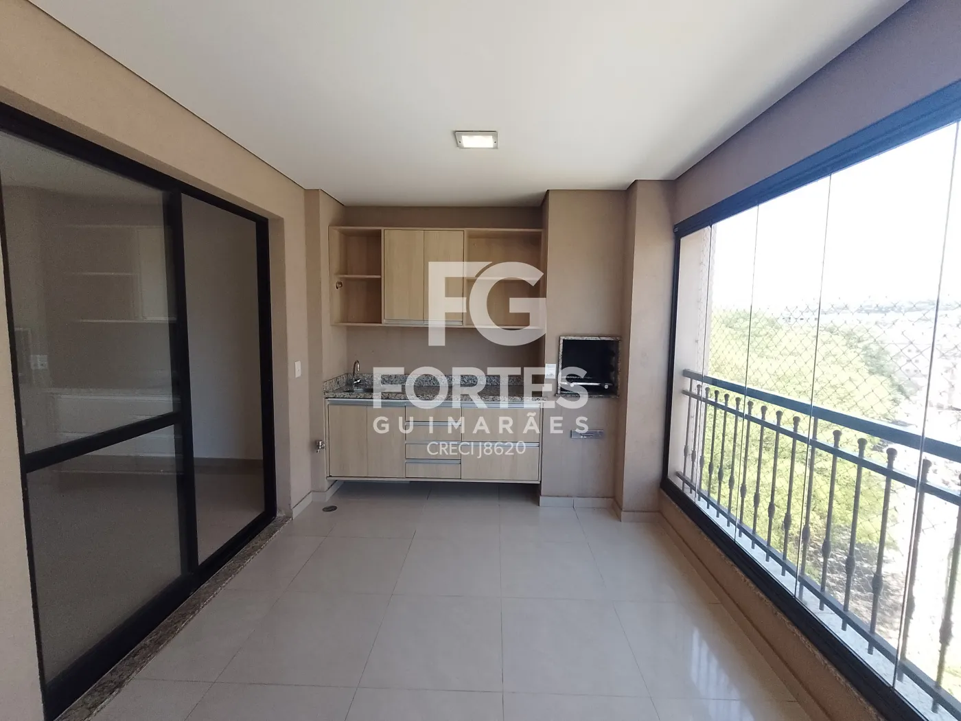 1 Varanda Gourmet com armário e Gabinete, Churrasqueira fechamento em vidro