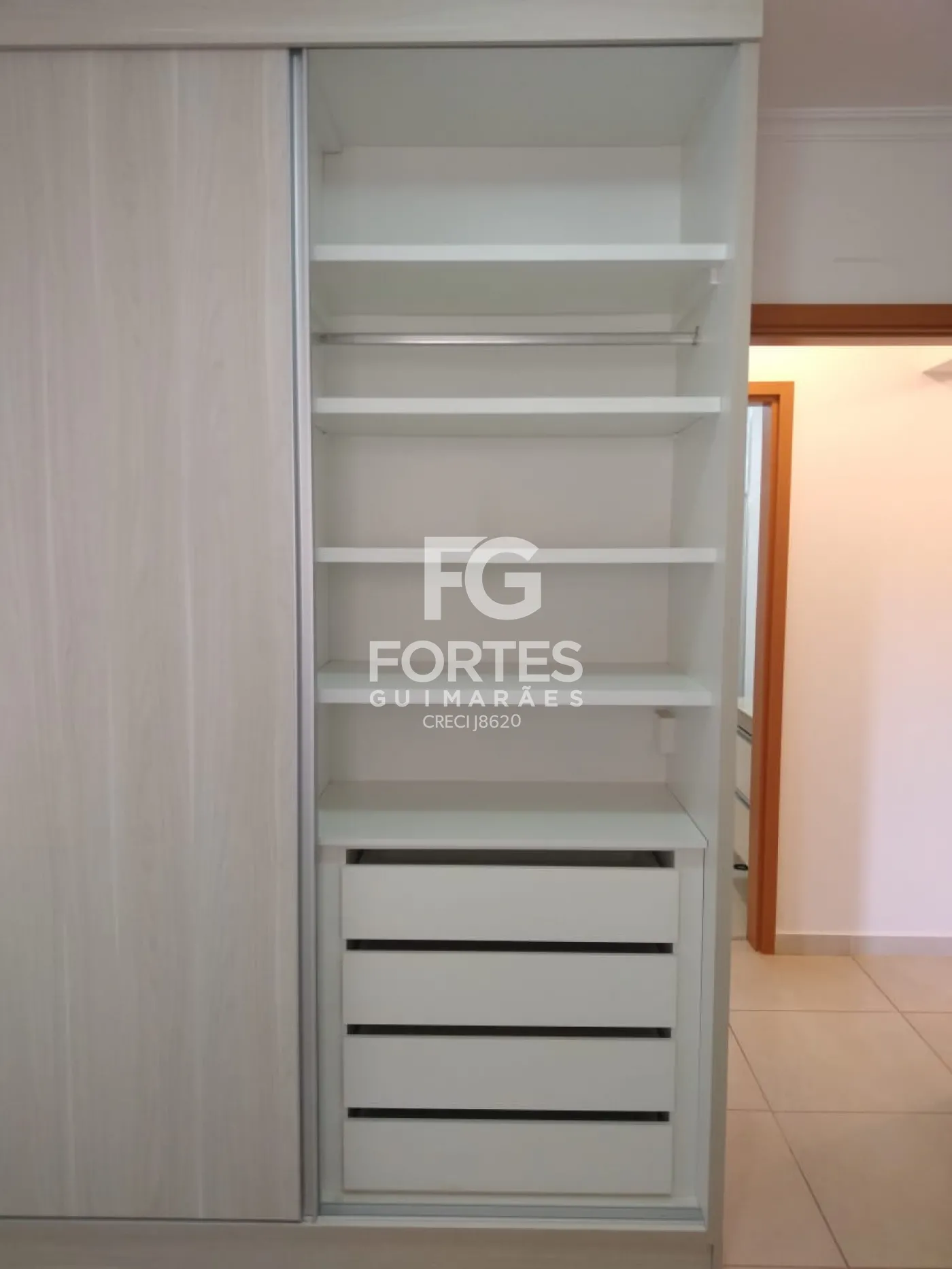 - Os armários dos dormitórios são madeirados, com fórmica branca na parte interna, com algumas prateleira móveis e com varões ( cabideiro ).