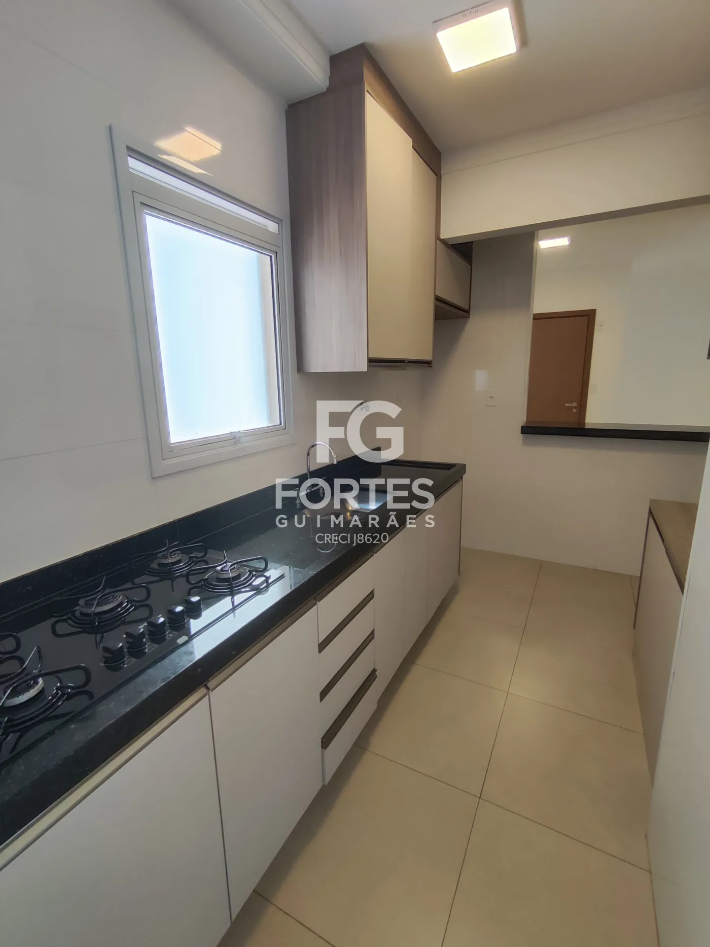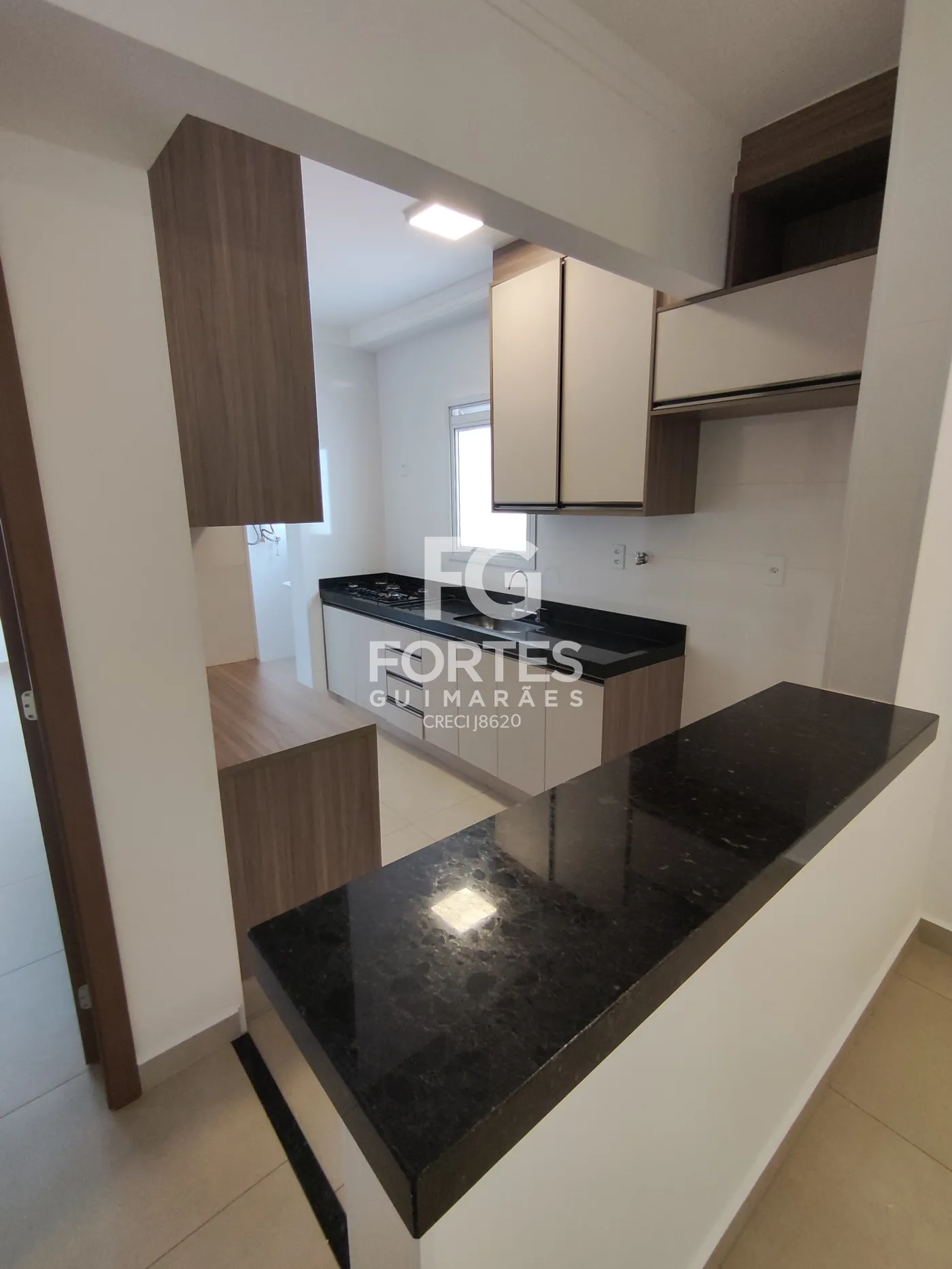 - Cozinha americana com balcão em granito, gabinete, armário, fogão cooktop,