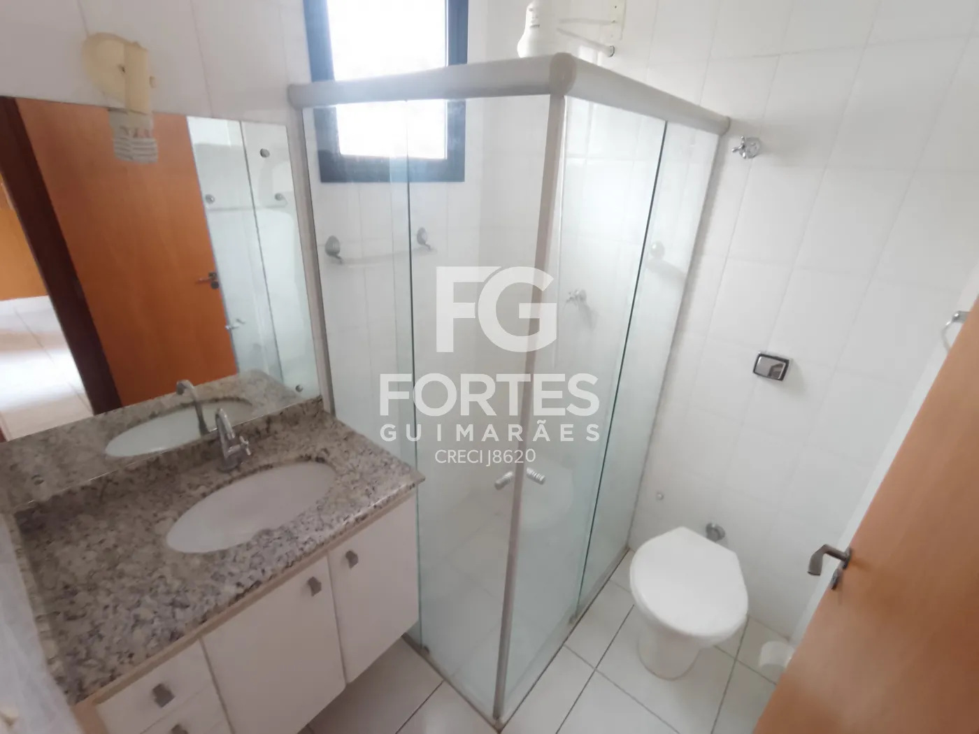 - Banheiros com gabinetes e box e espelhos;