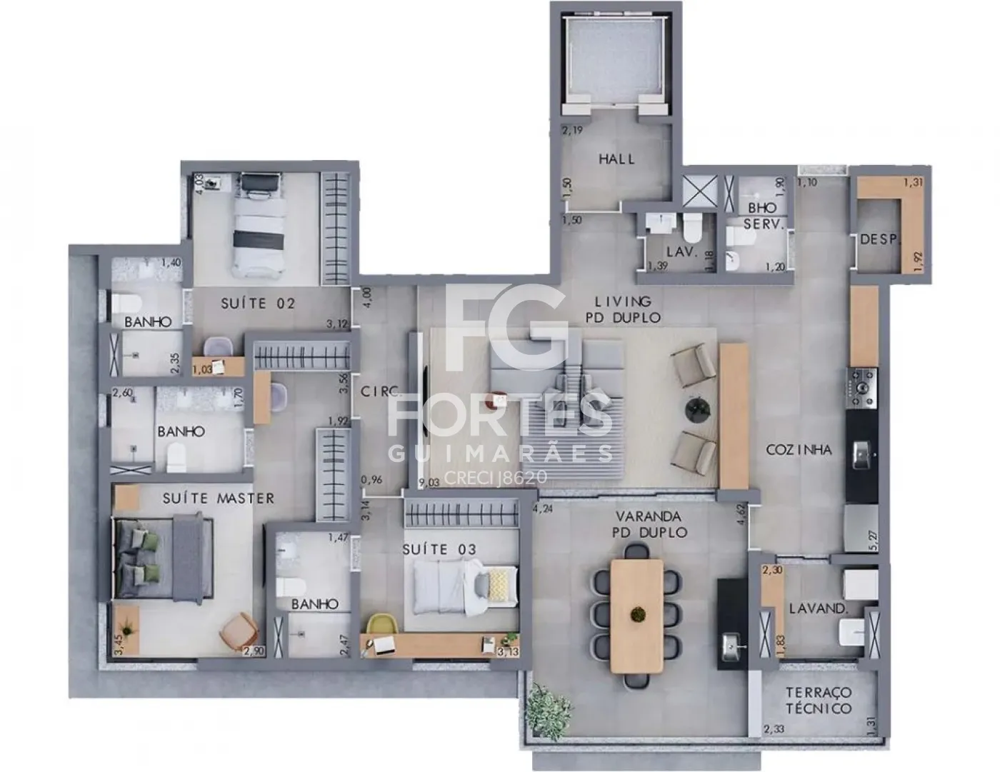 3 vagas e 1 depósito (pavimento) => unidades de 179m²
