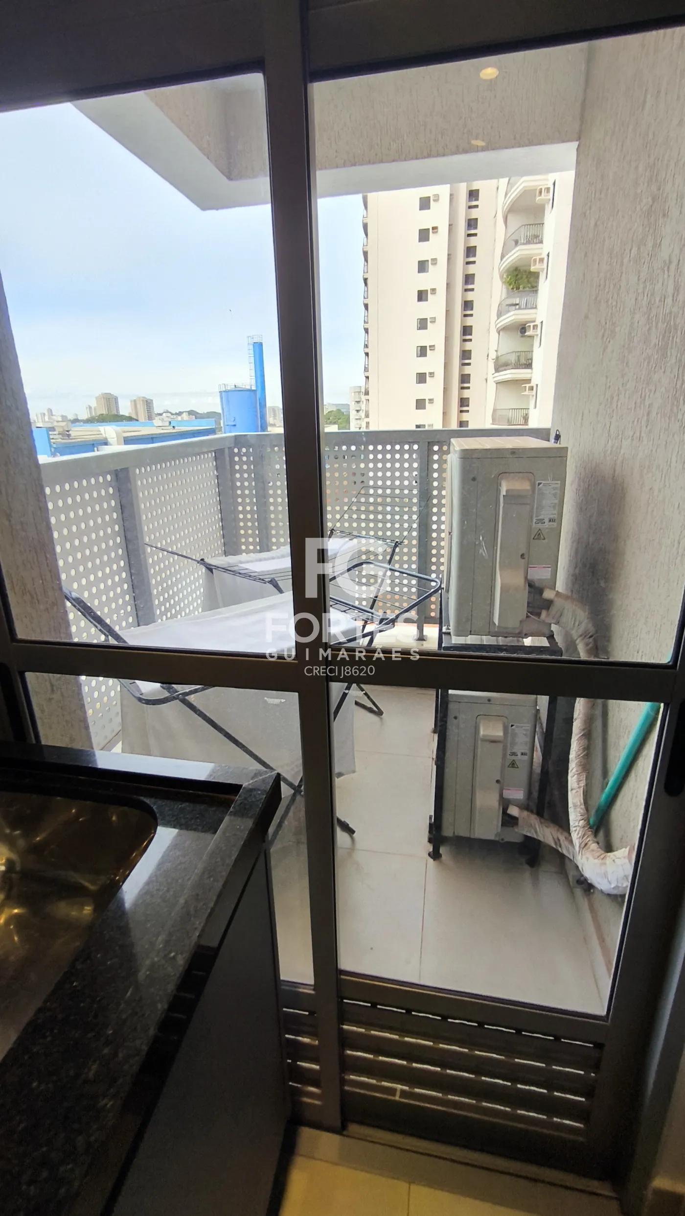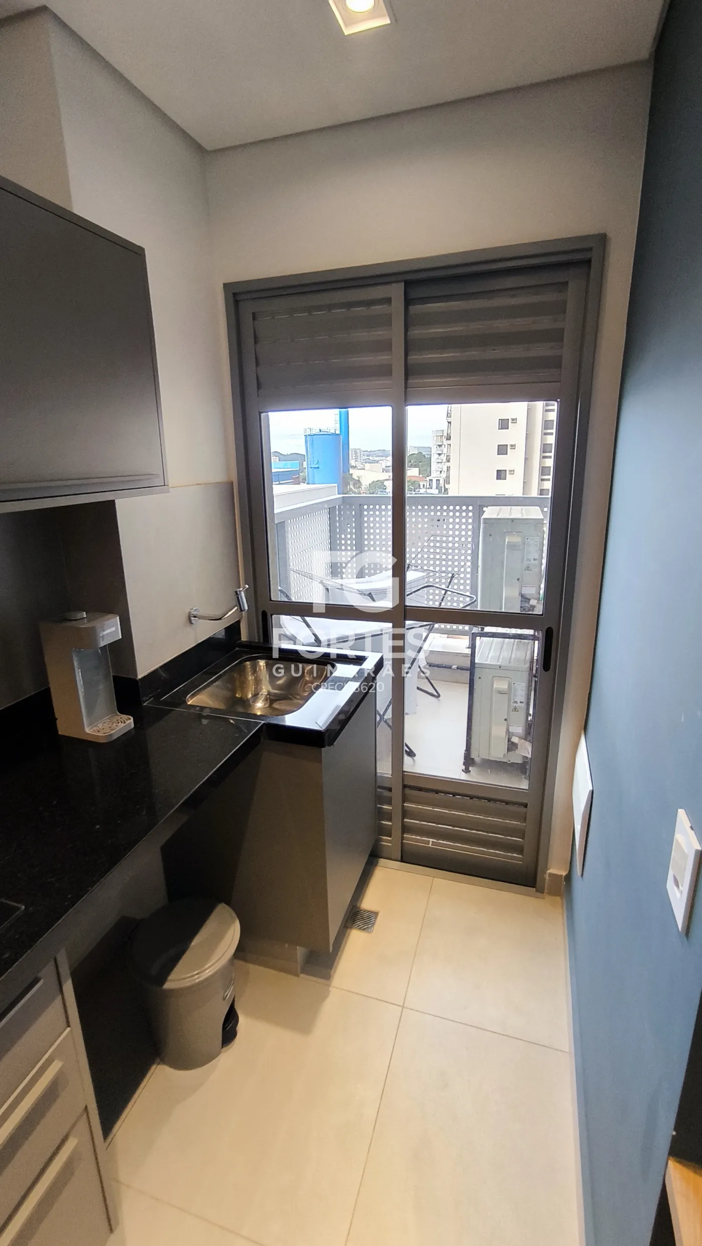 - varanda gourmet com fechamento em vidro, pia e gabinete