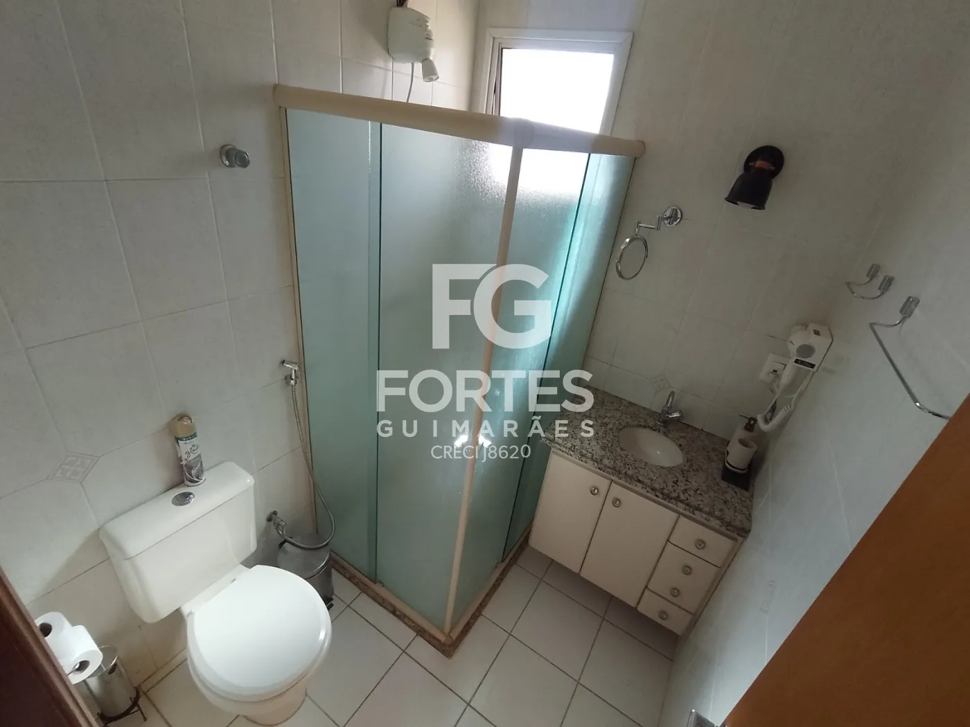 - Banheiro com gabinete e box em vidro;