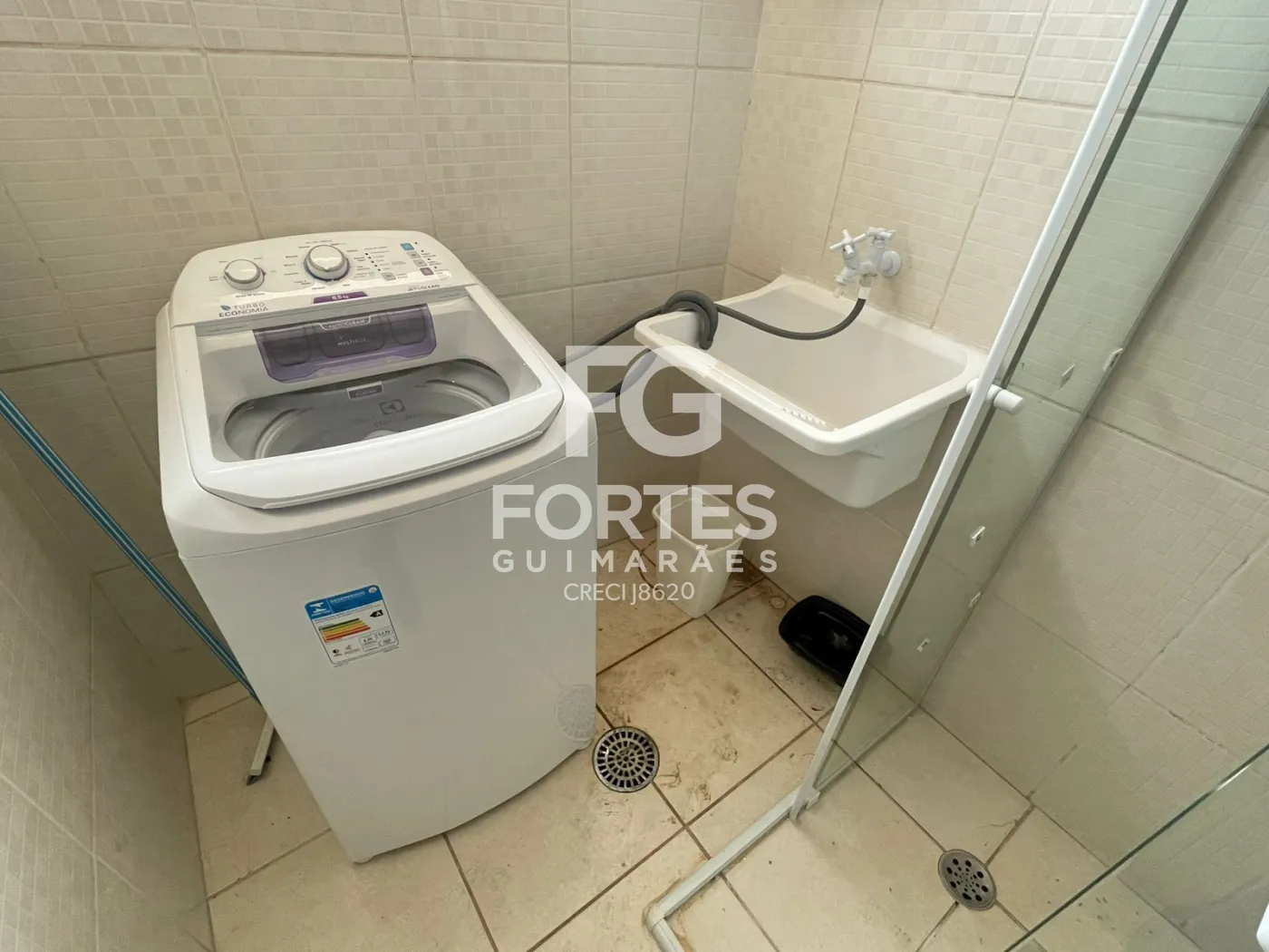Área de serviço com máquina de lavar