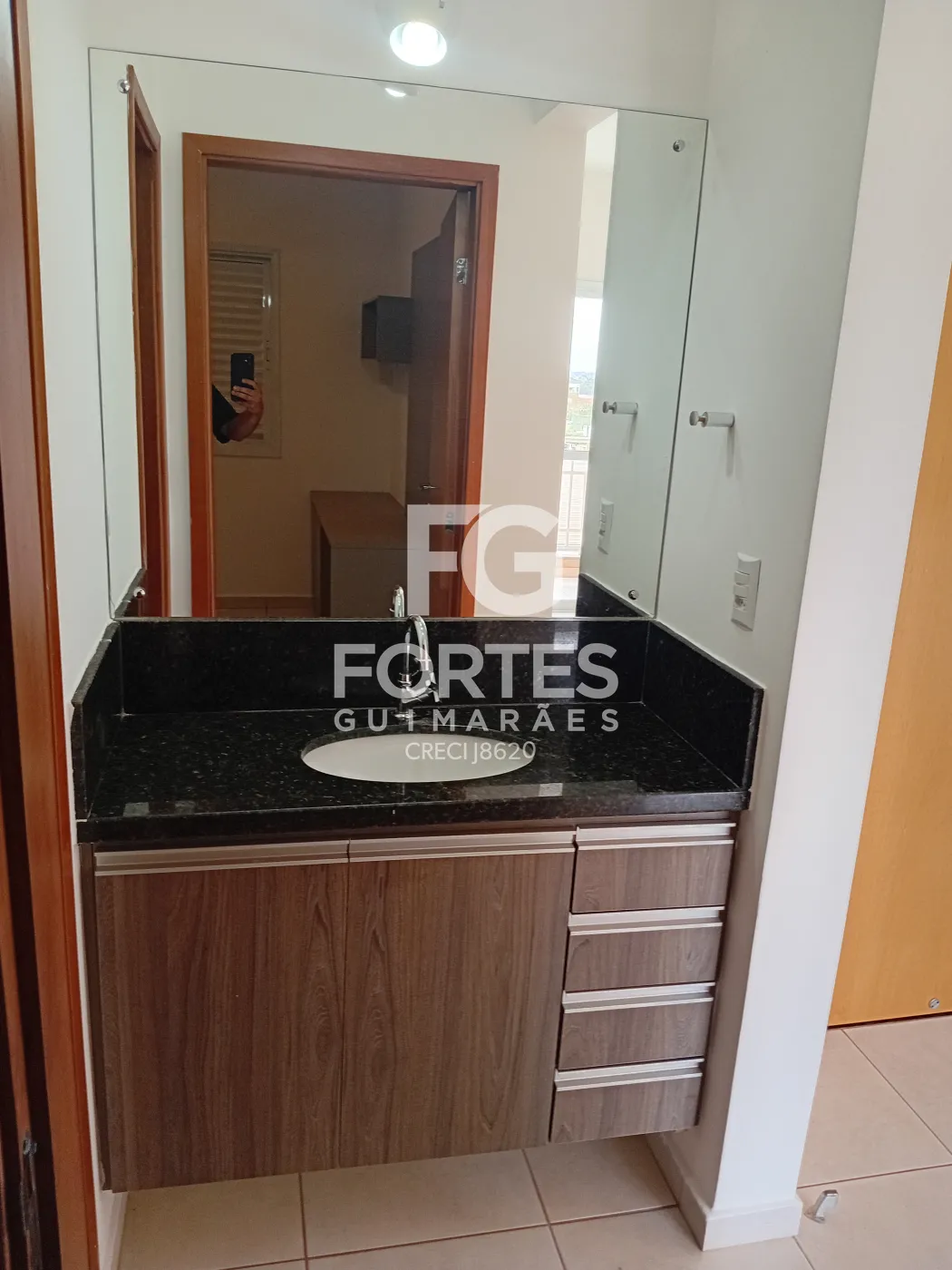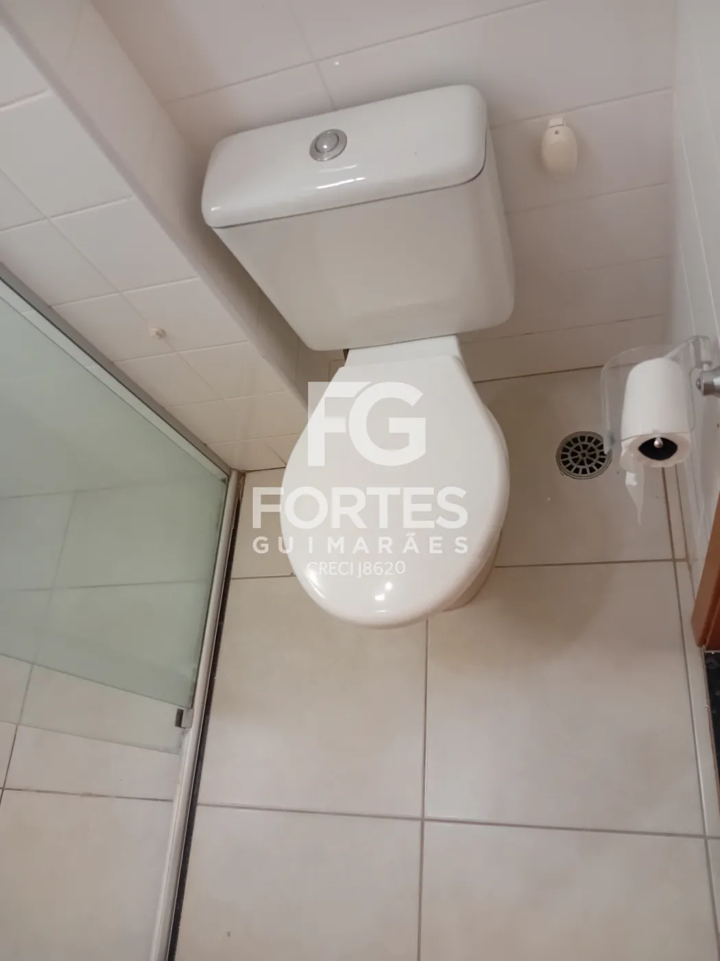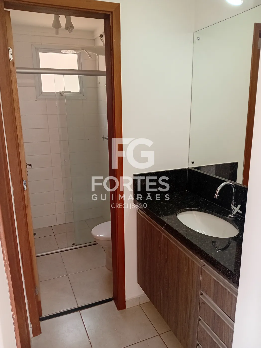 - banheiro social com blindex e gabinete, piso frio,
