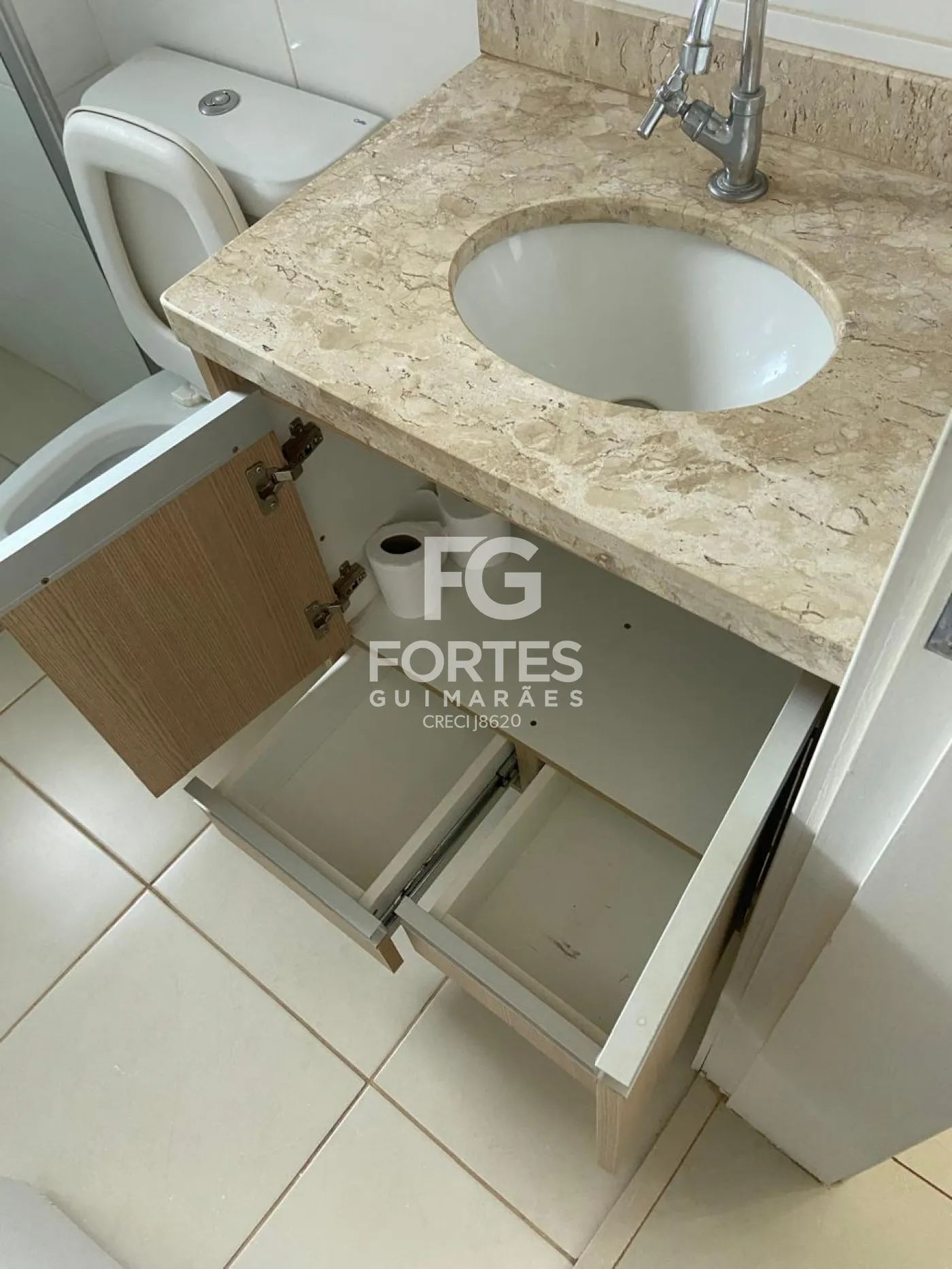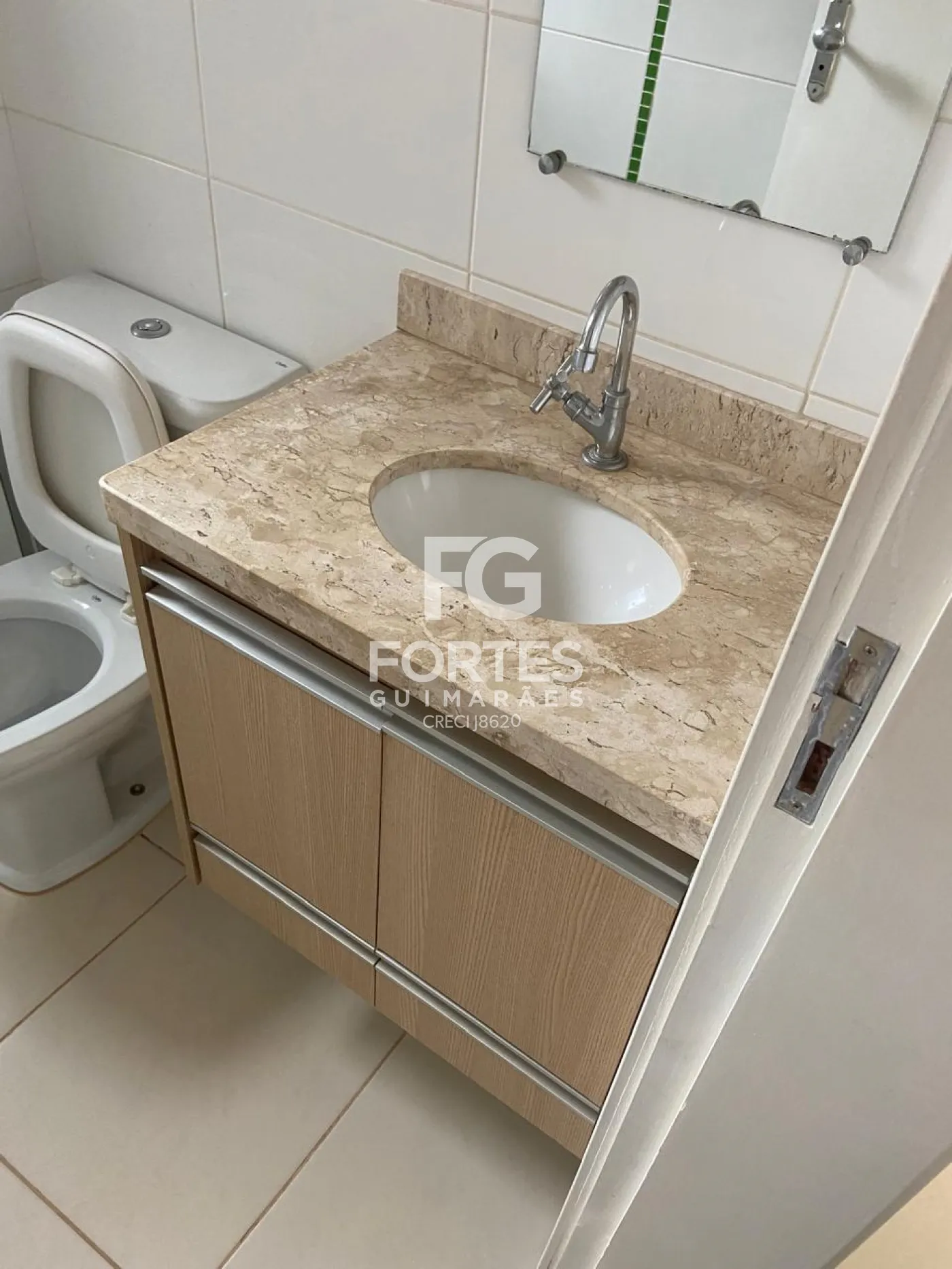-Banheiro social com gabinete e box em vidro;