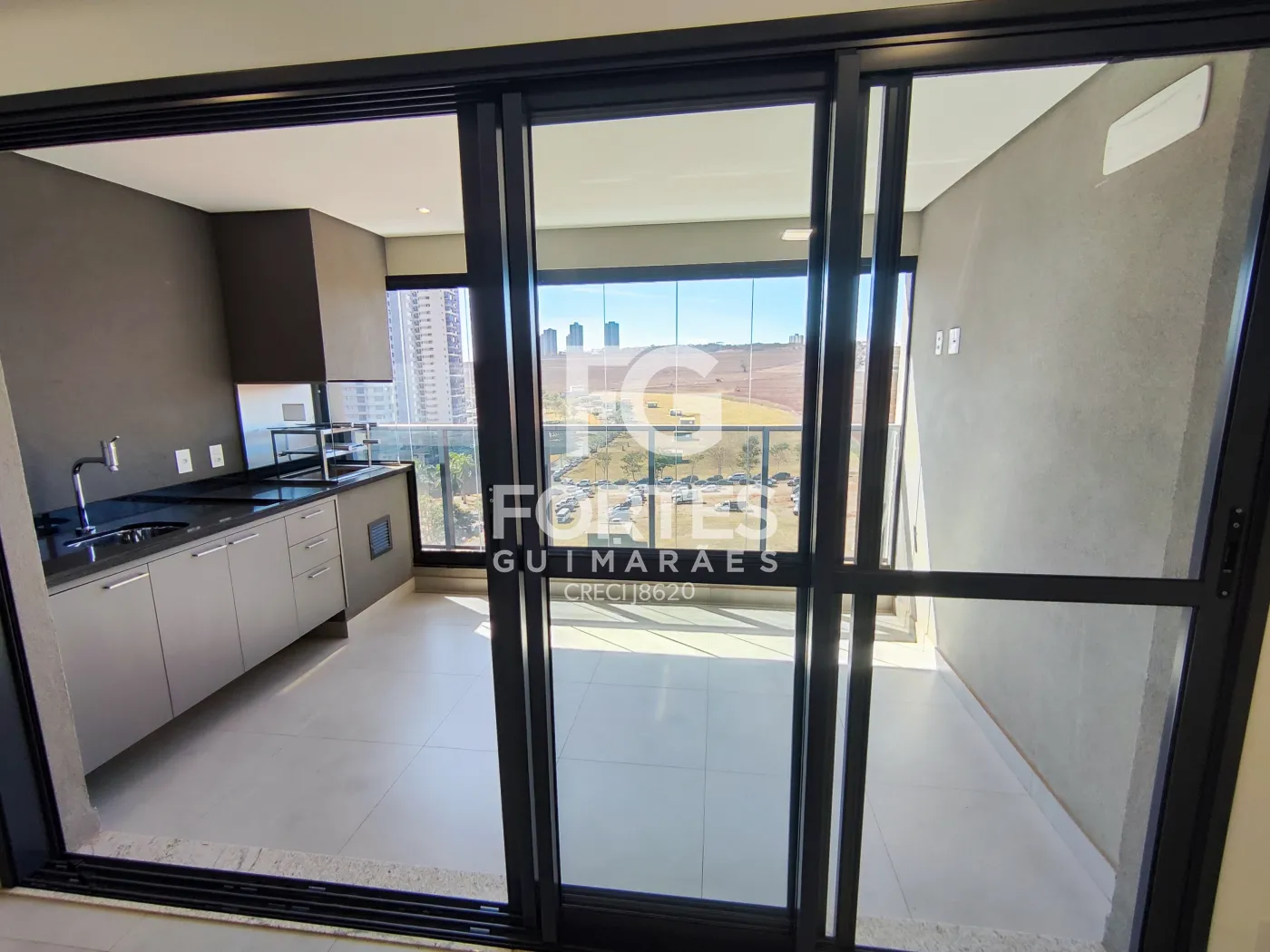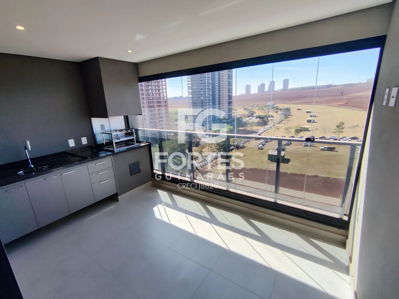- varanda gourmet com fechamento em vidro, churrasqueira, pia e gabinete