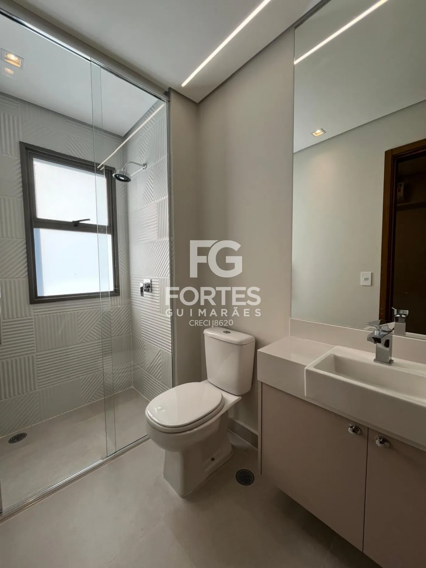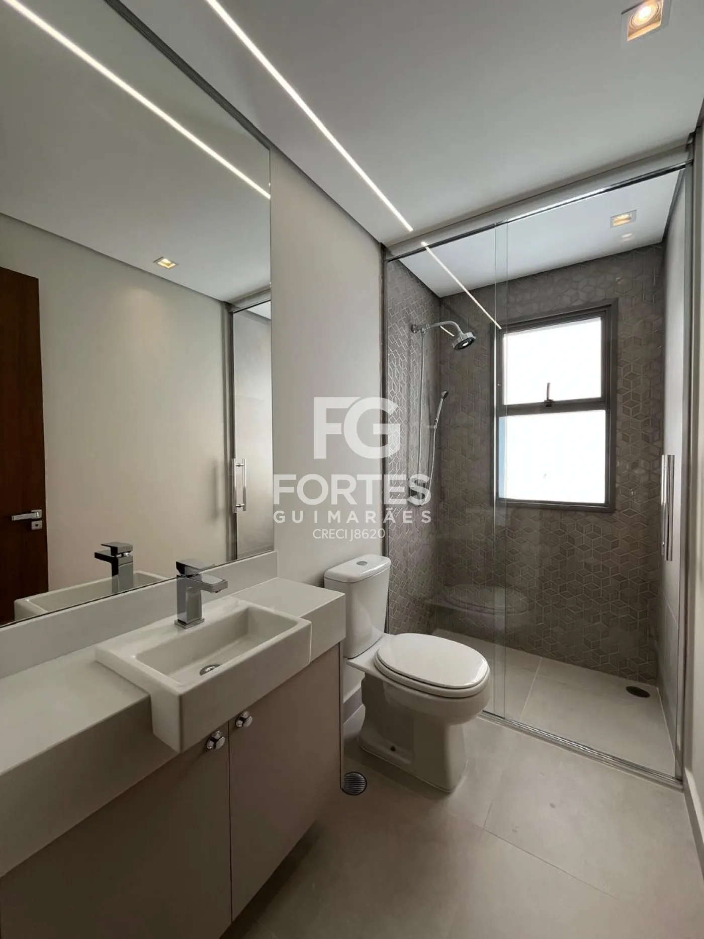 - Banheiros da suítes com gabinete e box em vidro;