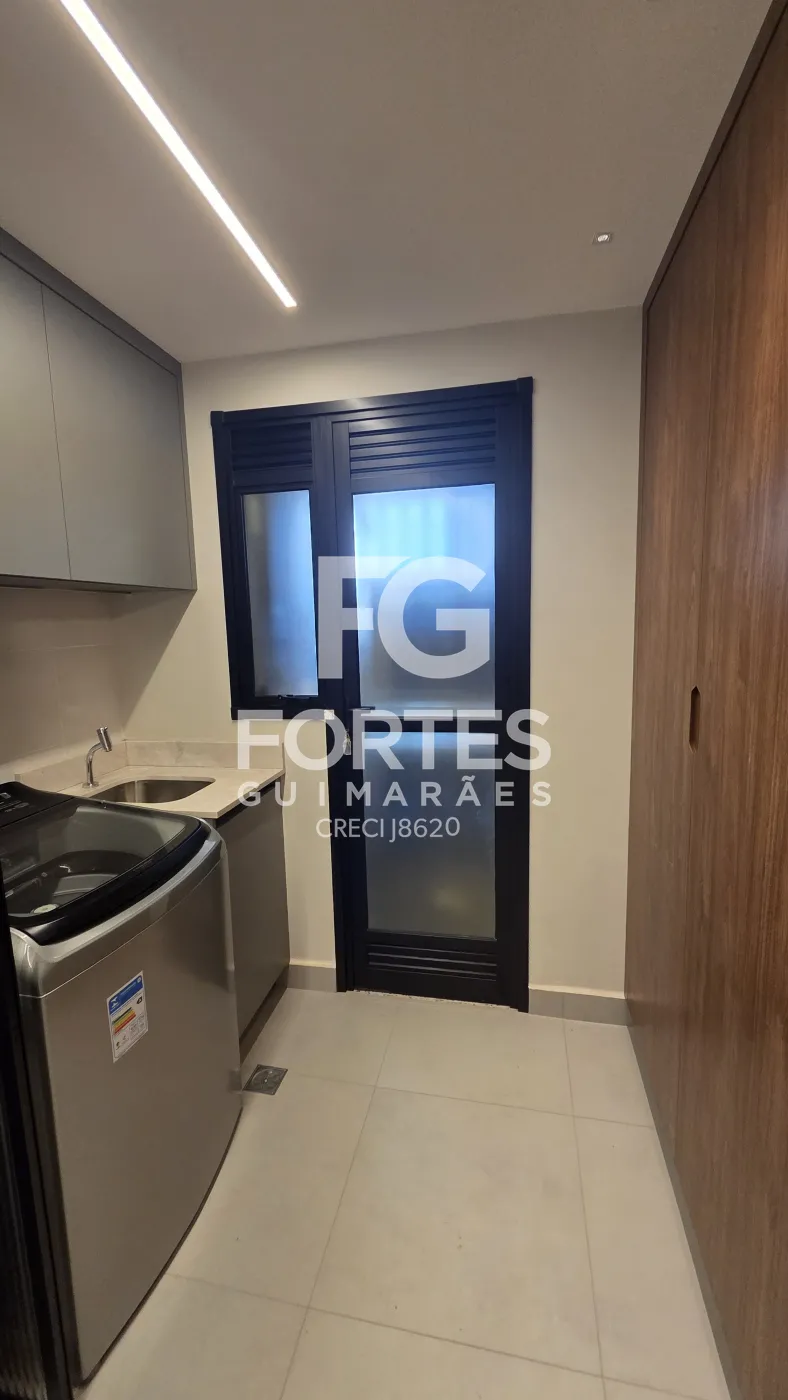 - Lavanderia com armário e maquina de lavar roupas