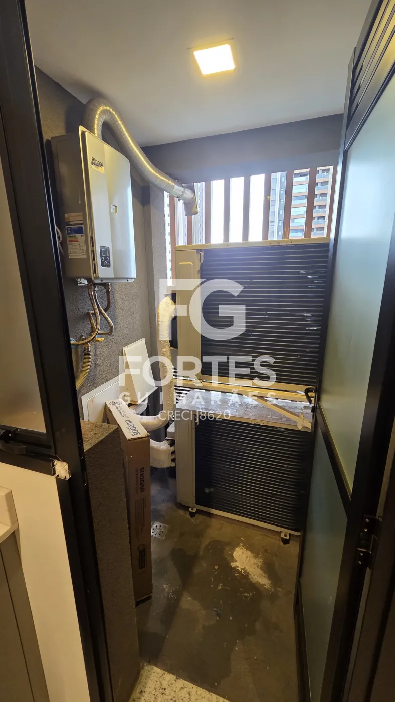 - Varanda Gourmet integrada com fechamento em vidro, ar condicionado, churrasqueira, pia e gabinete
