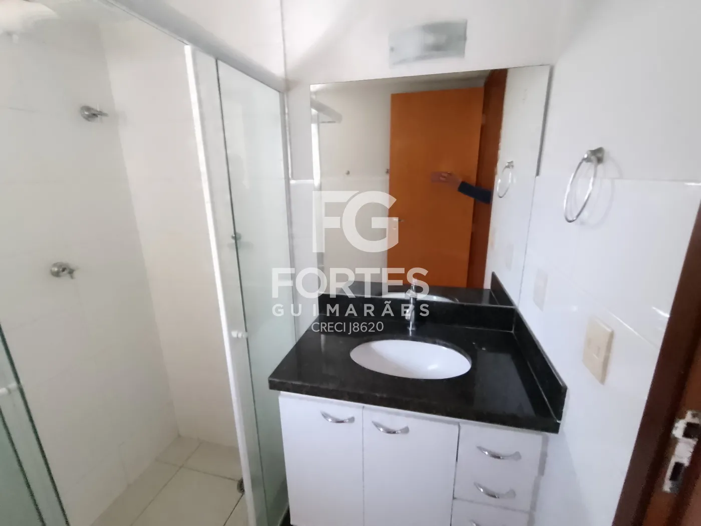 - Banheiro suíte com box, chuveiro e gabinete,