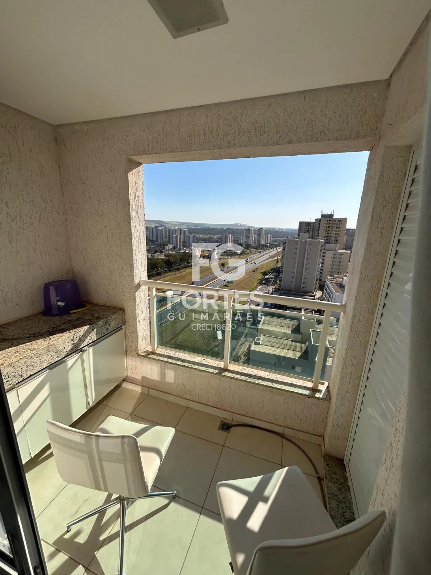 - Varanda Gourmet integrada à cozinha e balcão em granito com gabinete