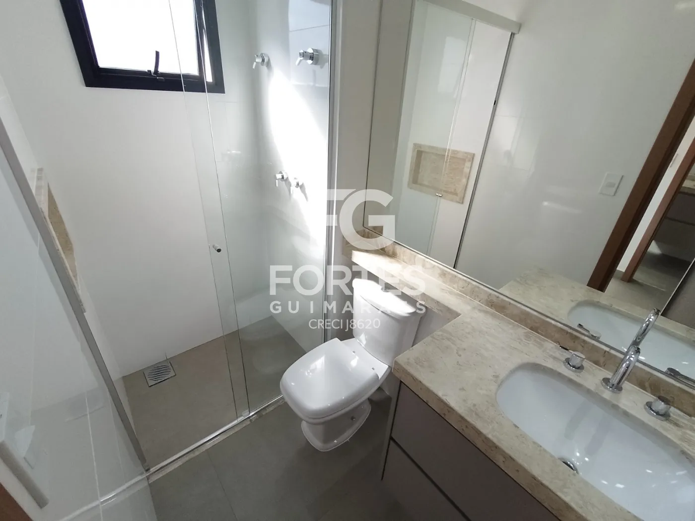 - Banheiros das suítes com gabinete e box em vidro;