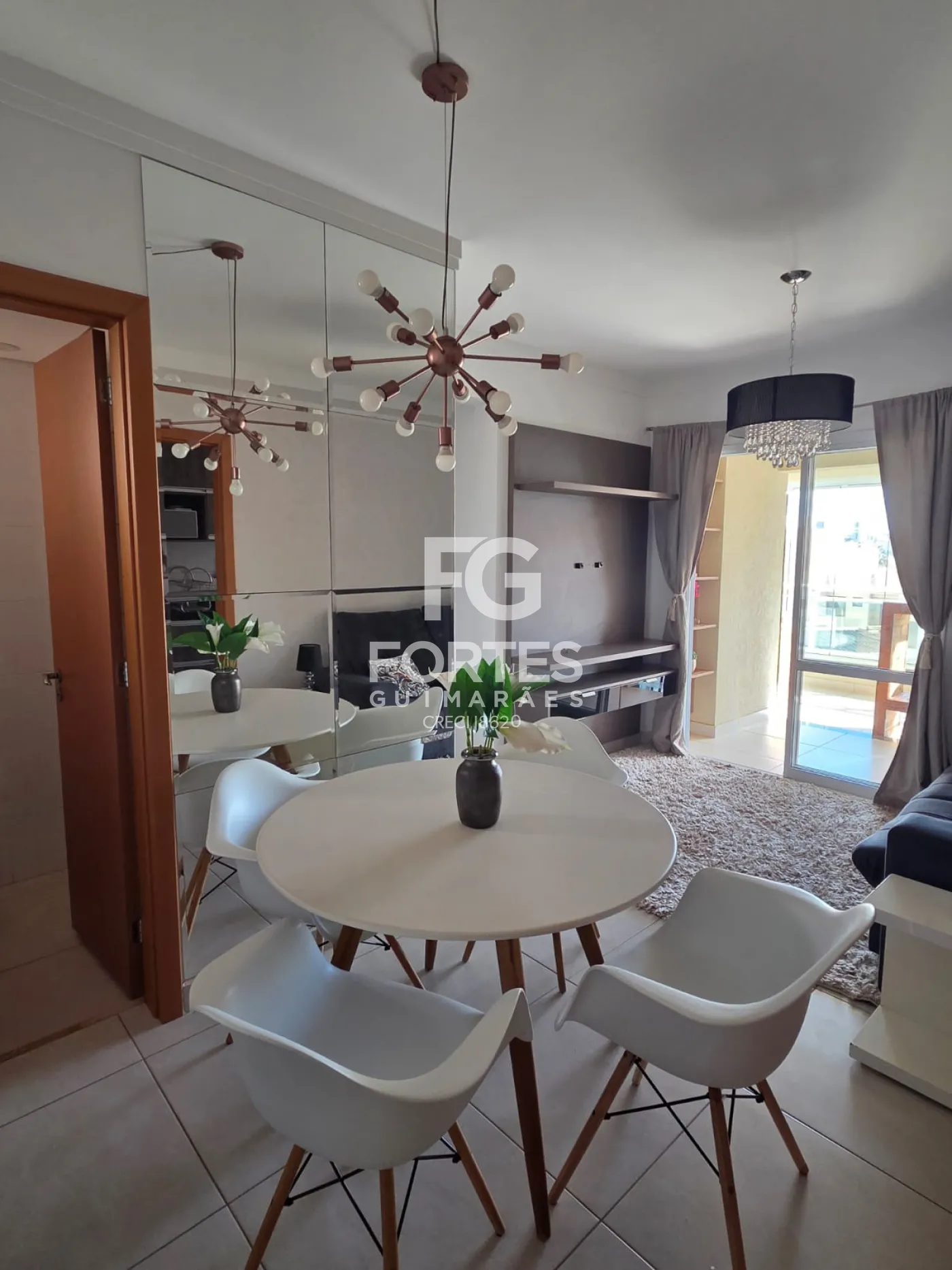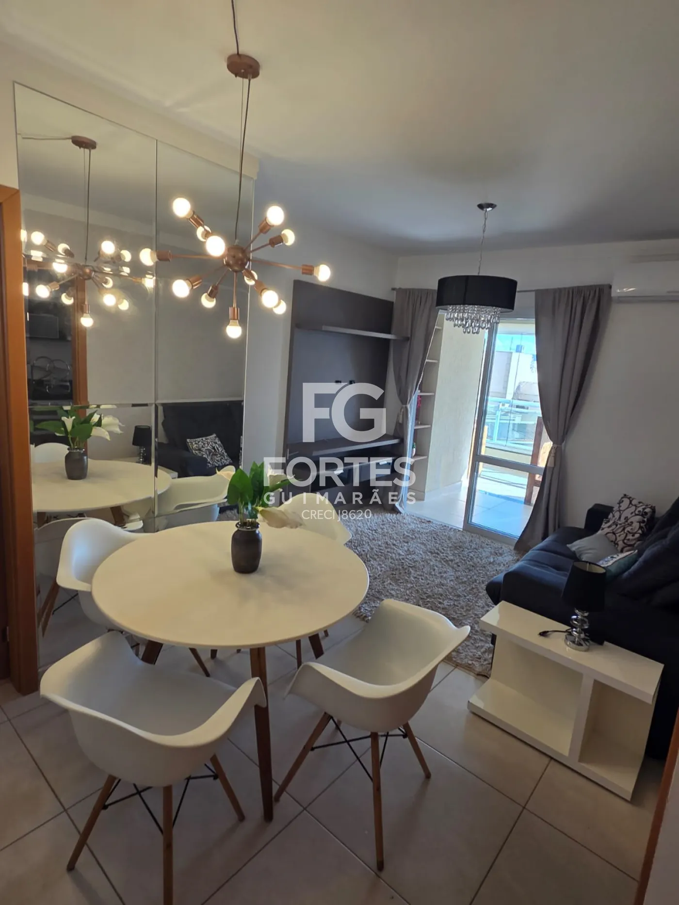 - Sala com dois ambientes com sofá retratil, rack e mesa com quatro cadeiras;