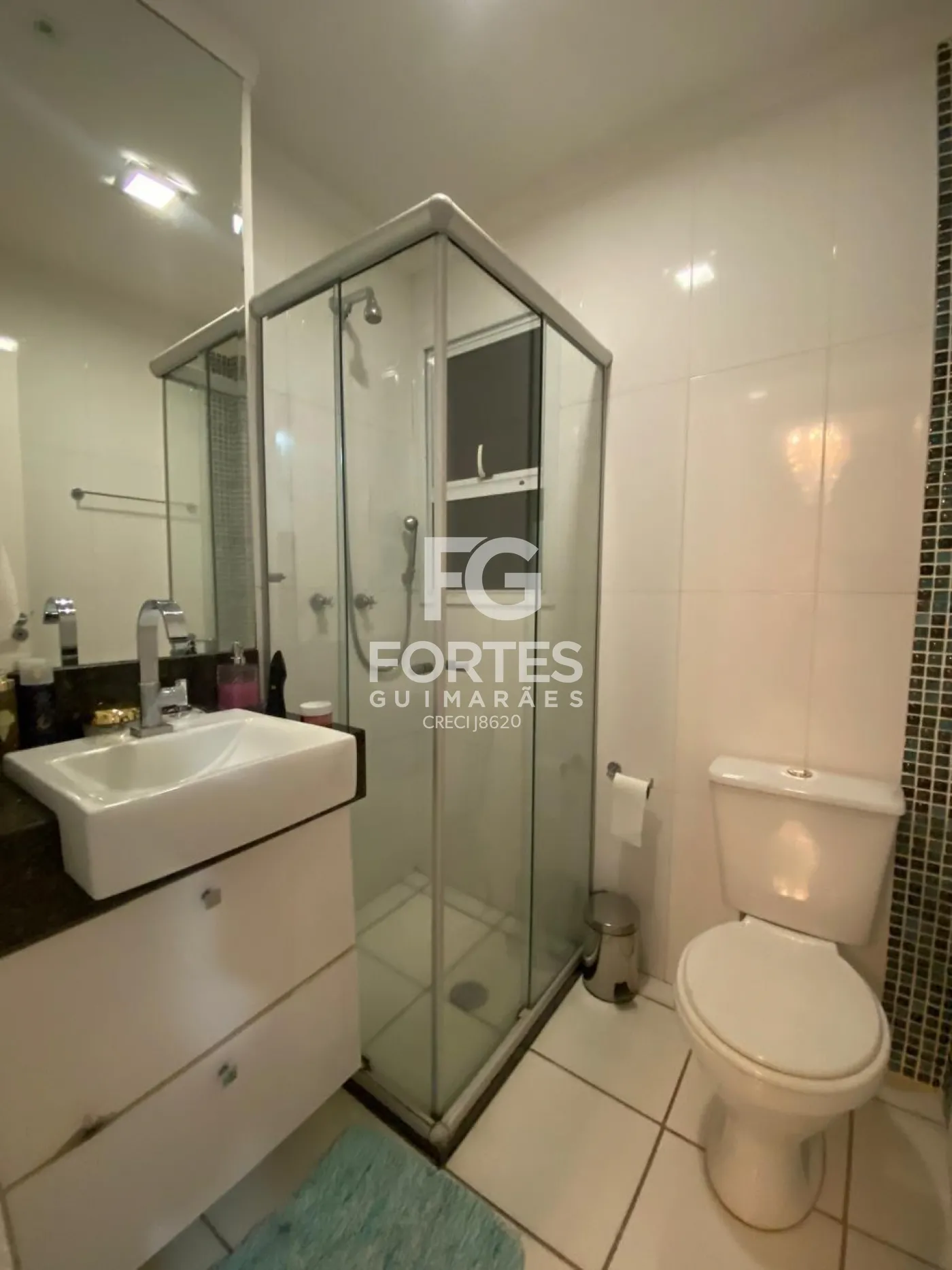- Banheiro social com gabinete e box em vidro;