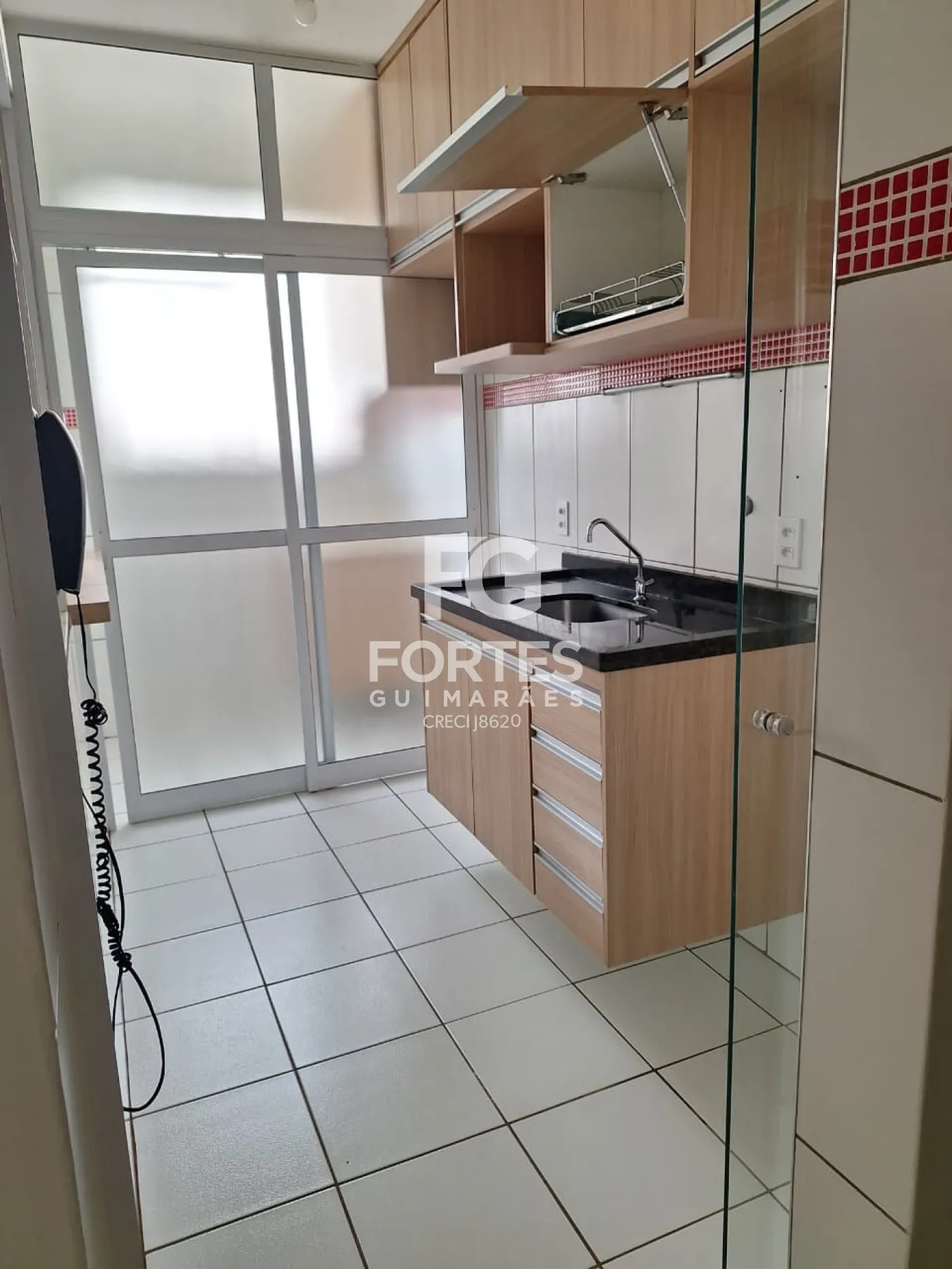 - Área de serviço separada por divisória em vidro com armário;