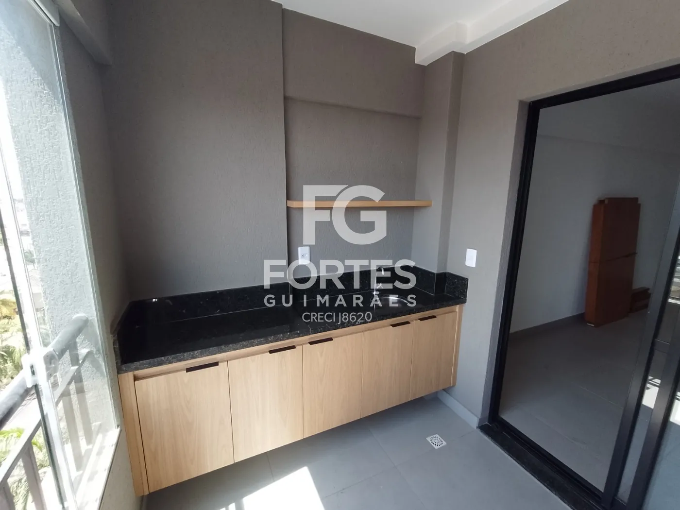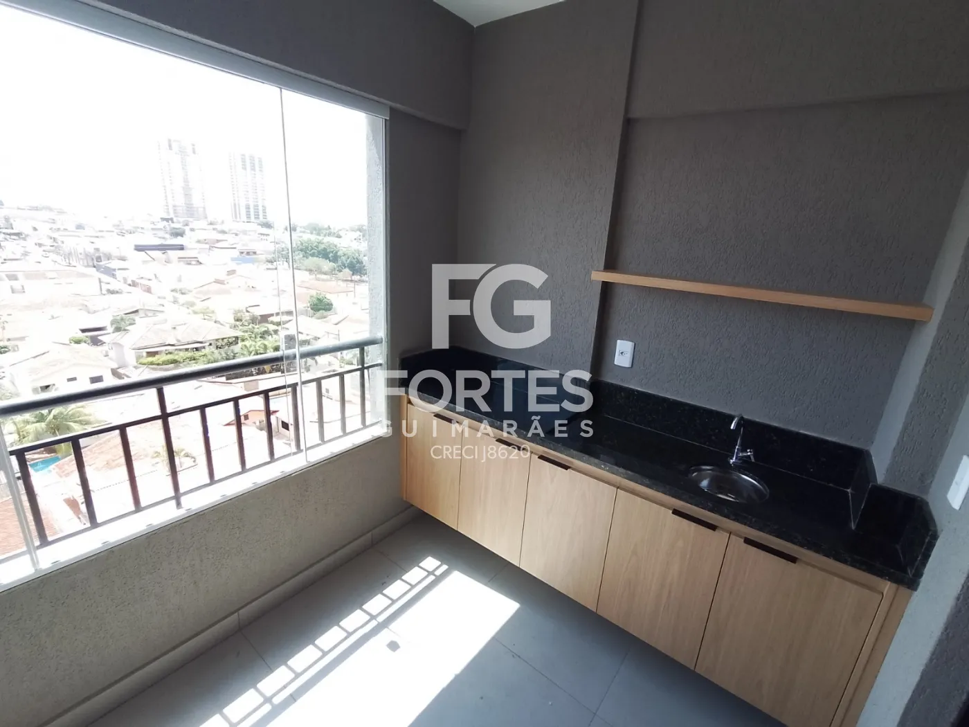 - Varanda Gourmet com fechamento em vidro vista para os fundos do condomínio.