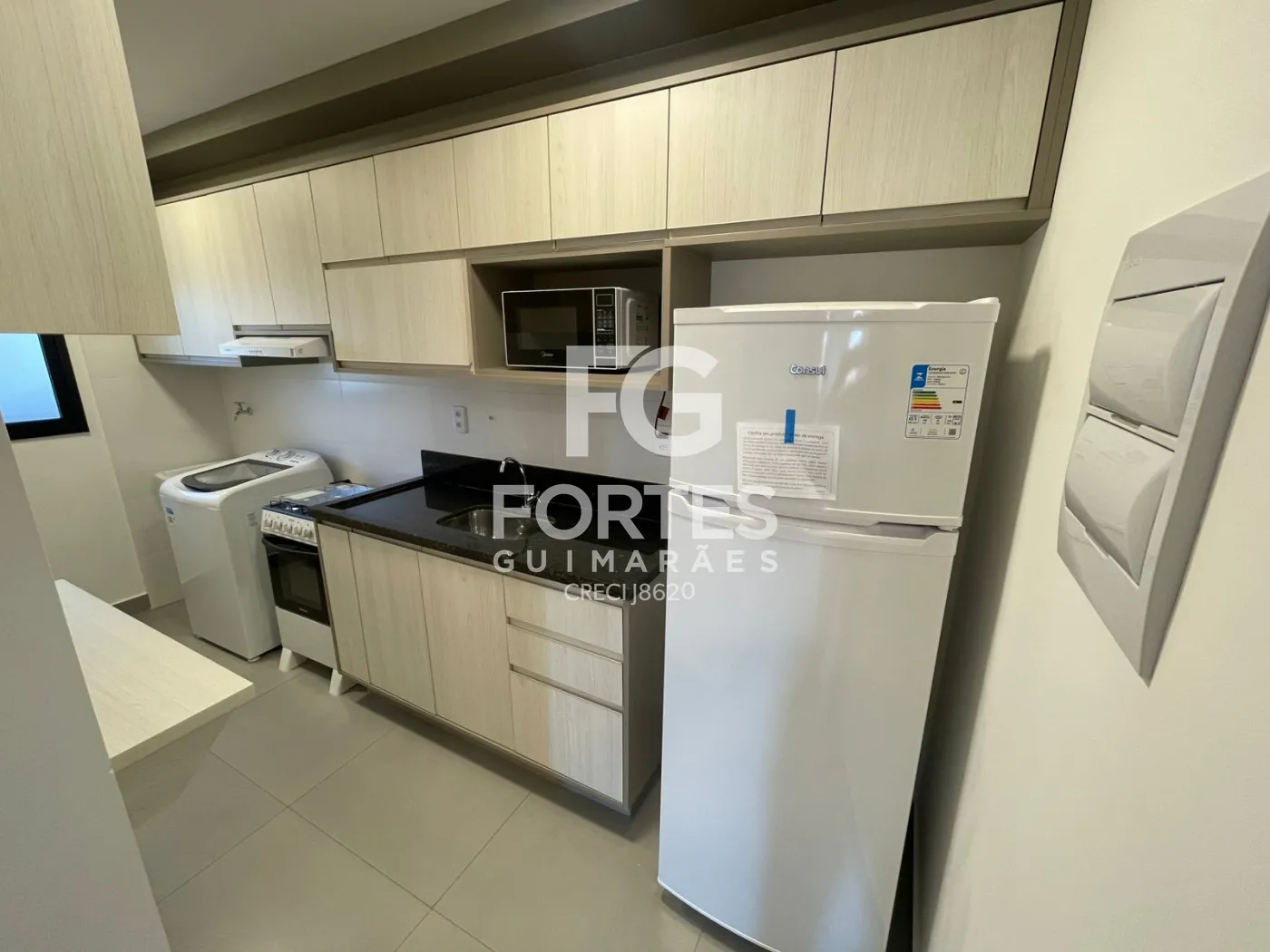 Cozinha rica em armário planejados com, geladeira, microondas, fogão e suggar,