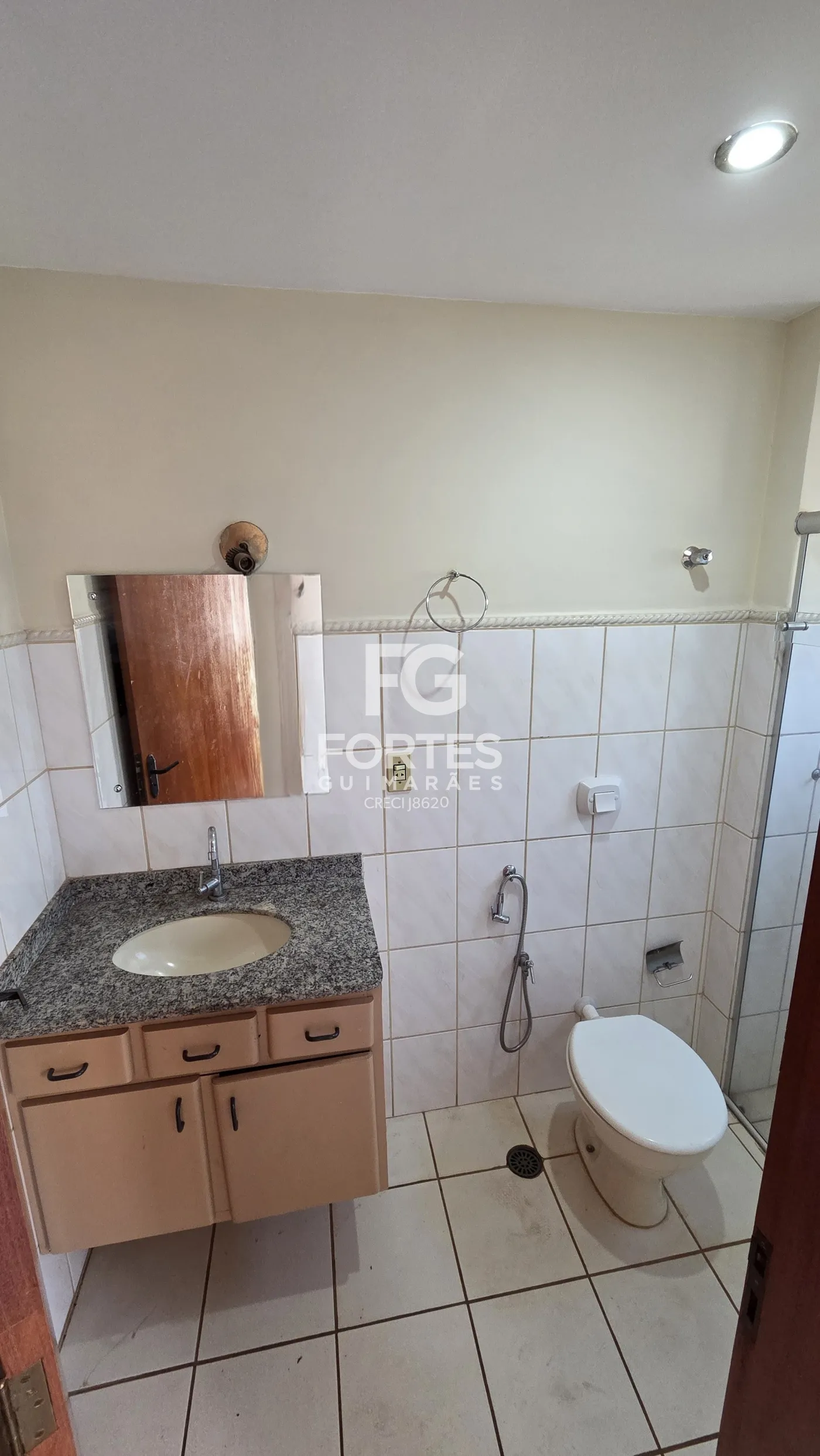 - 1 banheiro suíte com gabinete, espelho e box em vidro