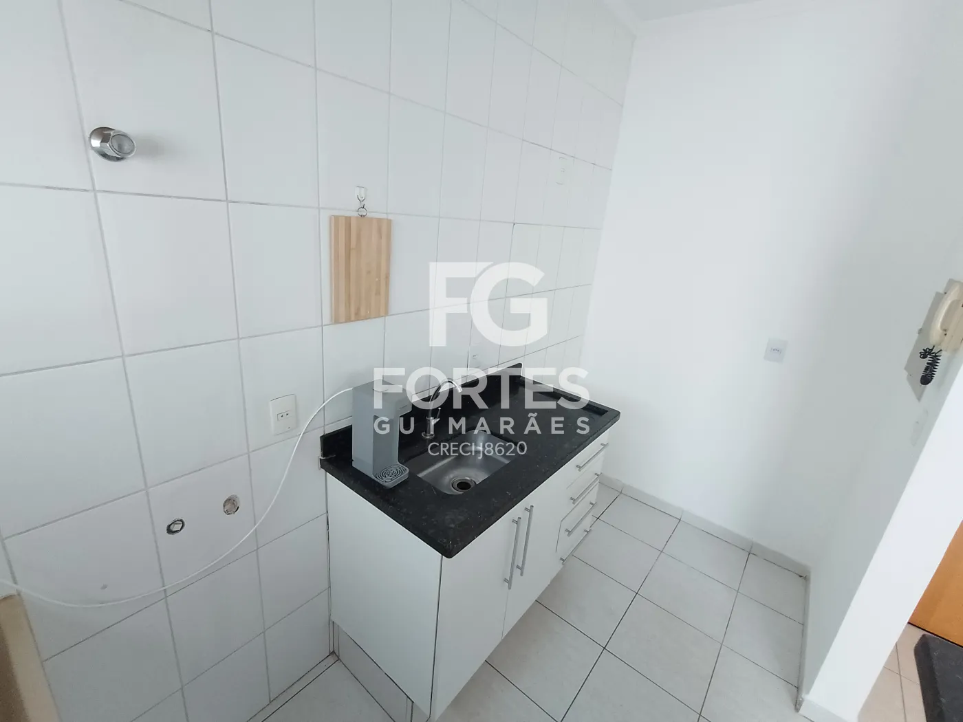 Apartamento primeiro (1º) andar Face Sombra ao lado do Ribeirão Shopping, 01 dormitório com armário, wc social com gabinete, espelho, box em vidro, sala com sacada, cozinha americana com balcão em granito, gabinete, lavanderia e 01 vaga de garagem com portão automatizado. Pintura nova, piso em cerâmica esmaltada e armários planejados.