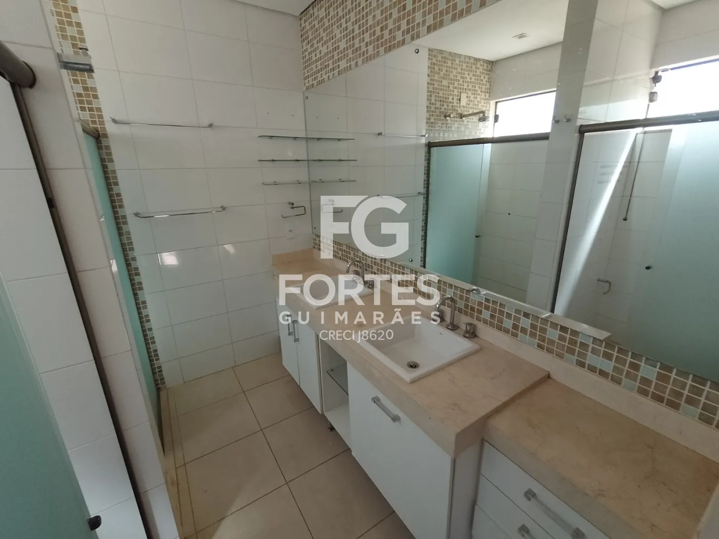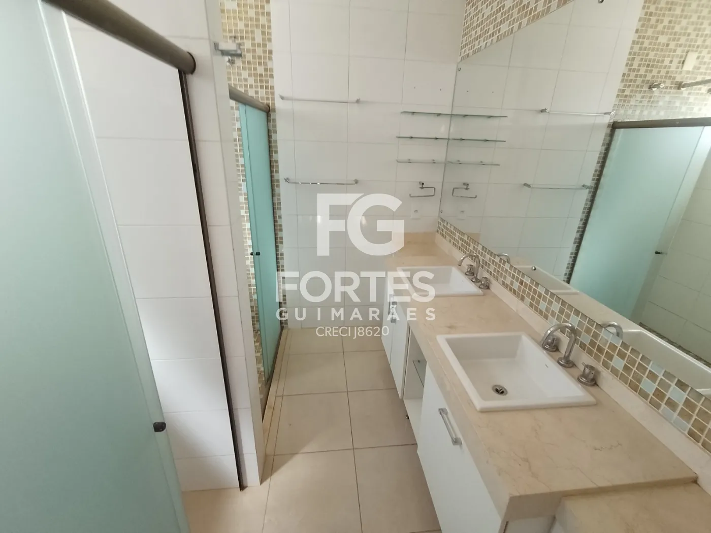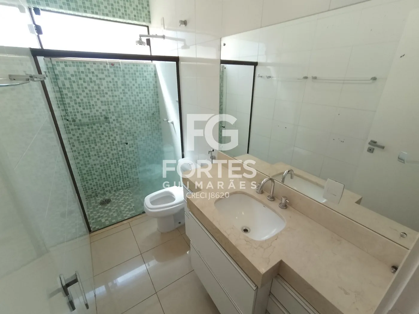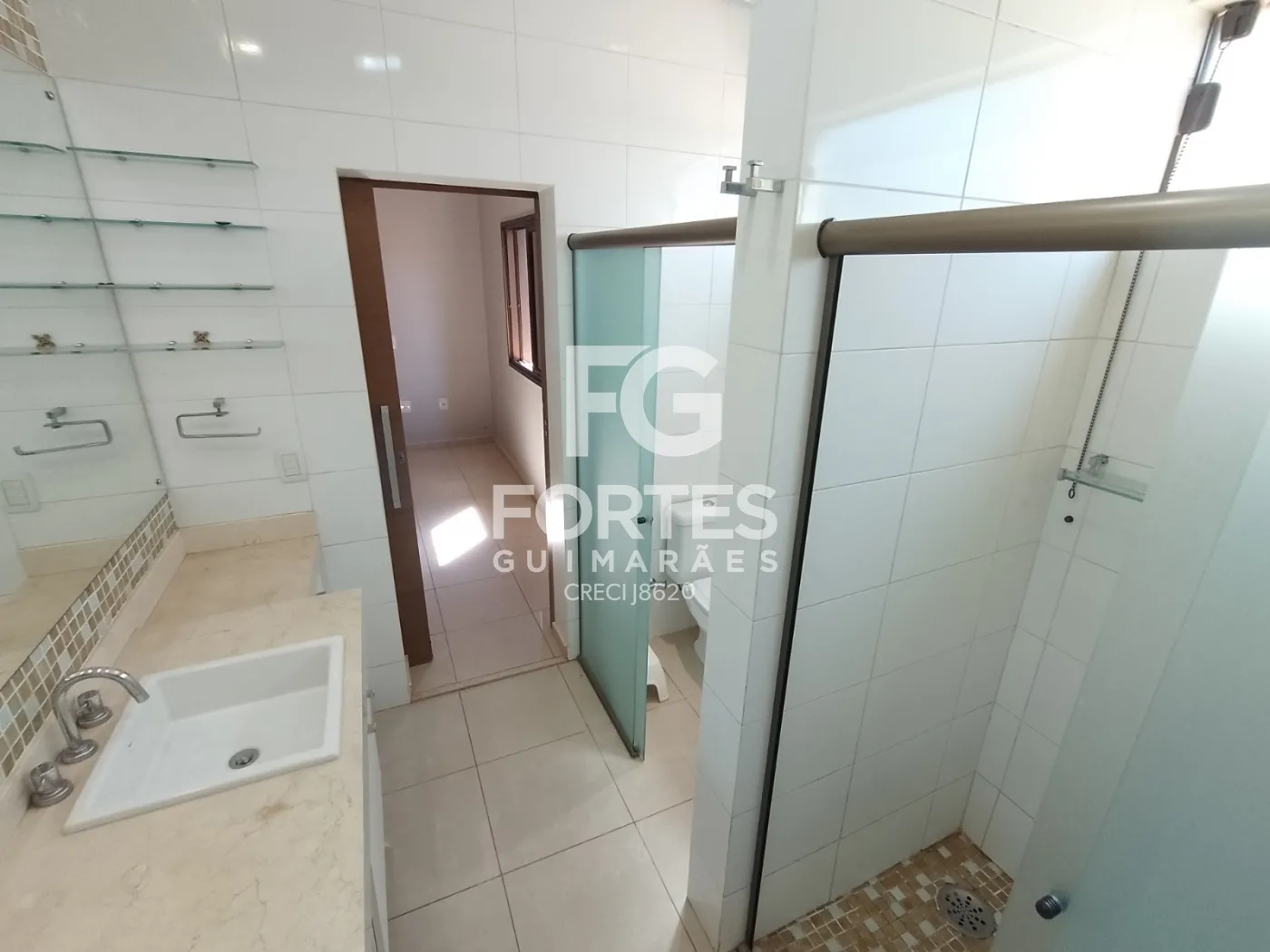 - 4 Banheiro social com gabinete e box em vidro;