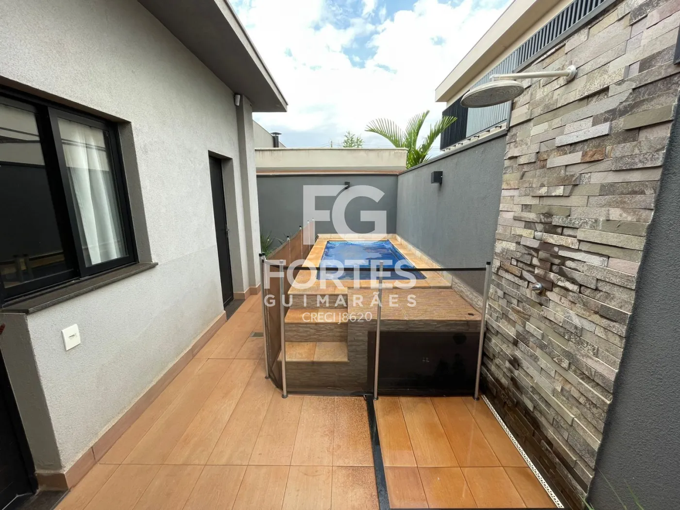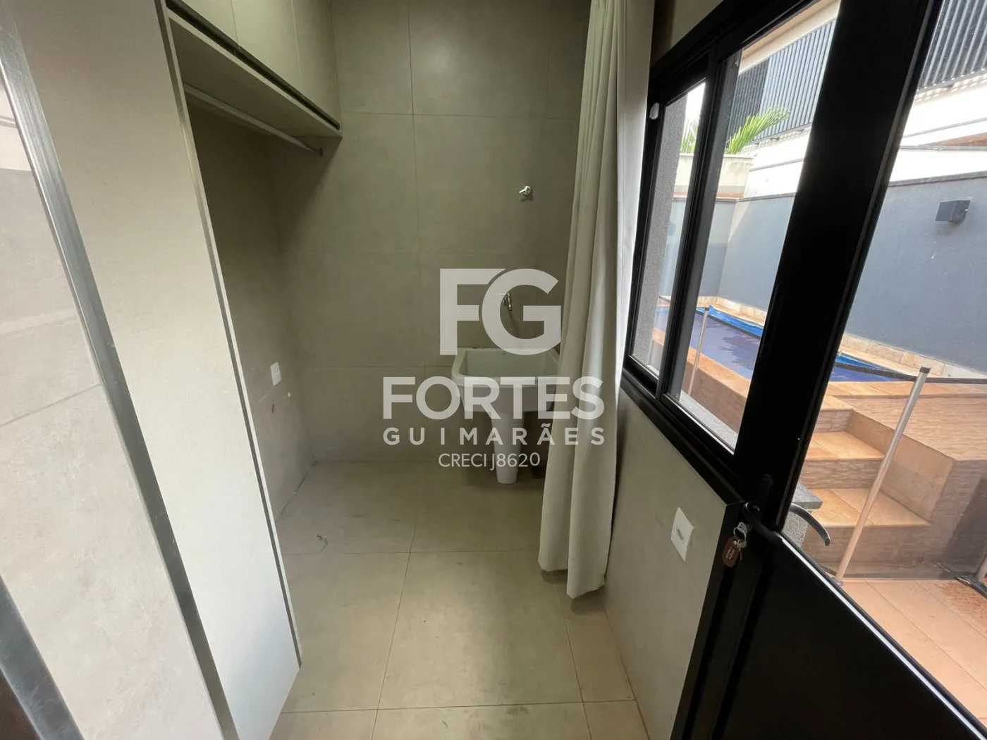 Lavabo na área da piscina com armário gabinete,