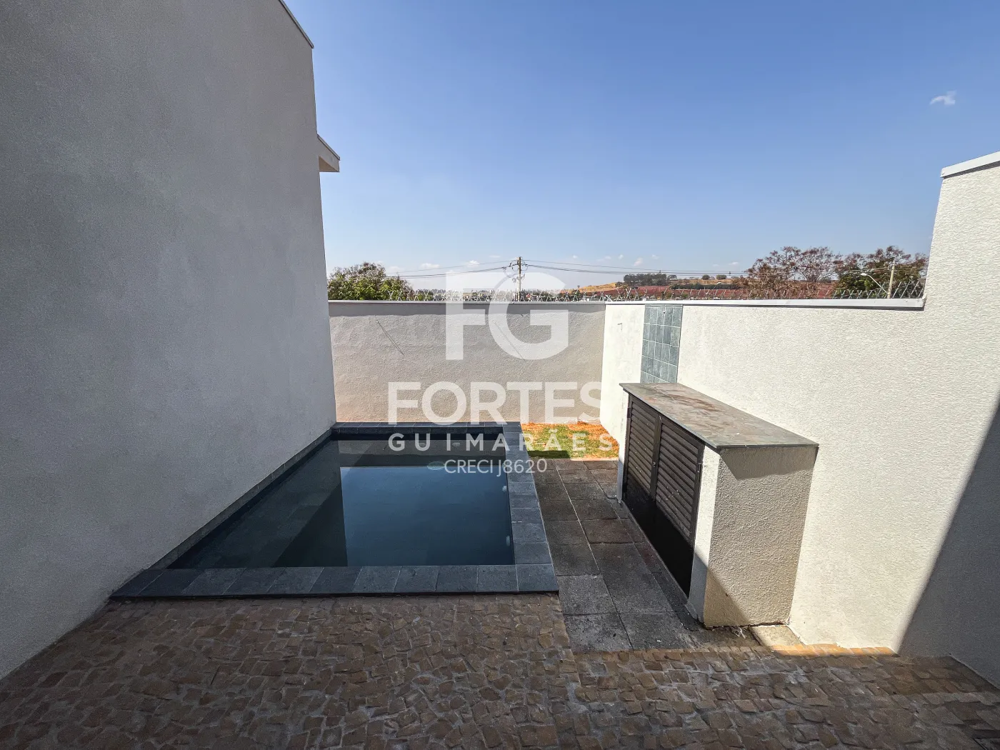 - Piscina de alvenaria e revestimento cerâmico, preparada para aquecimento