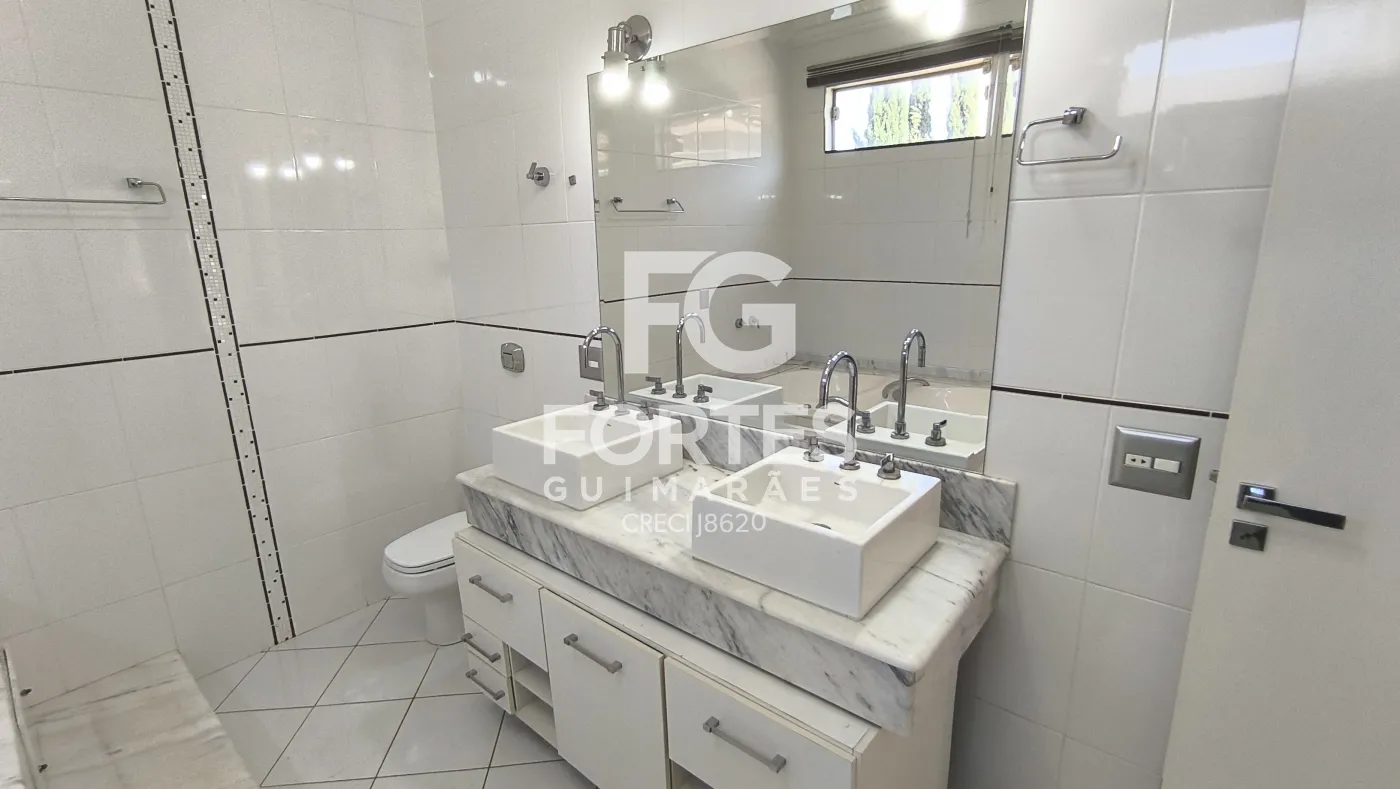 - 3 banheiros suítes sendo 1 máster com gabinetes, espelhos, box em vidro e 1 com banheira de hidromassagem
