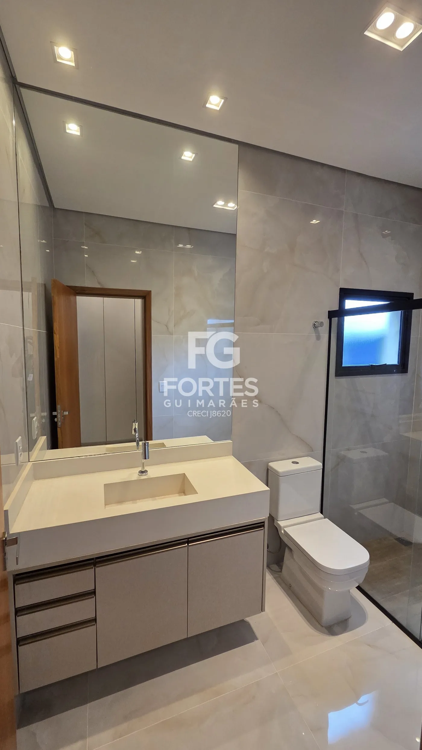 - 2 Banheiros sendo 1suíte e 1 social, com gabinetes, espelhos e box em vidro