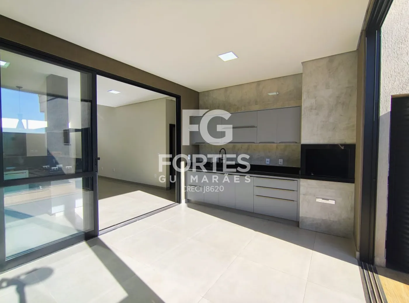 Área gourmet com armários e churrasqueira