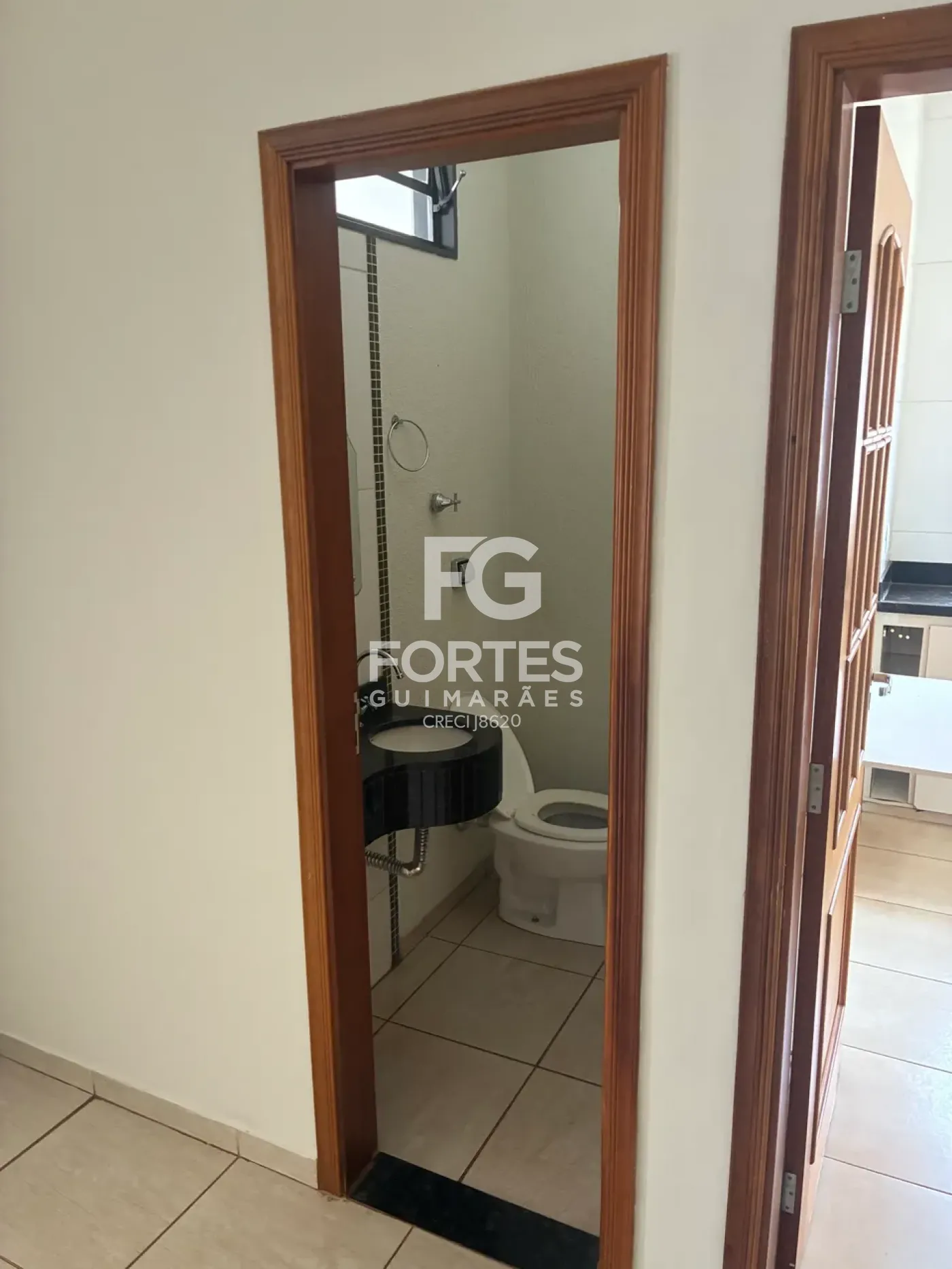 - Banheiro social com gabinete e box em vidro;