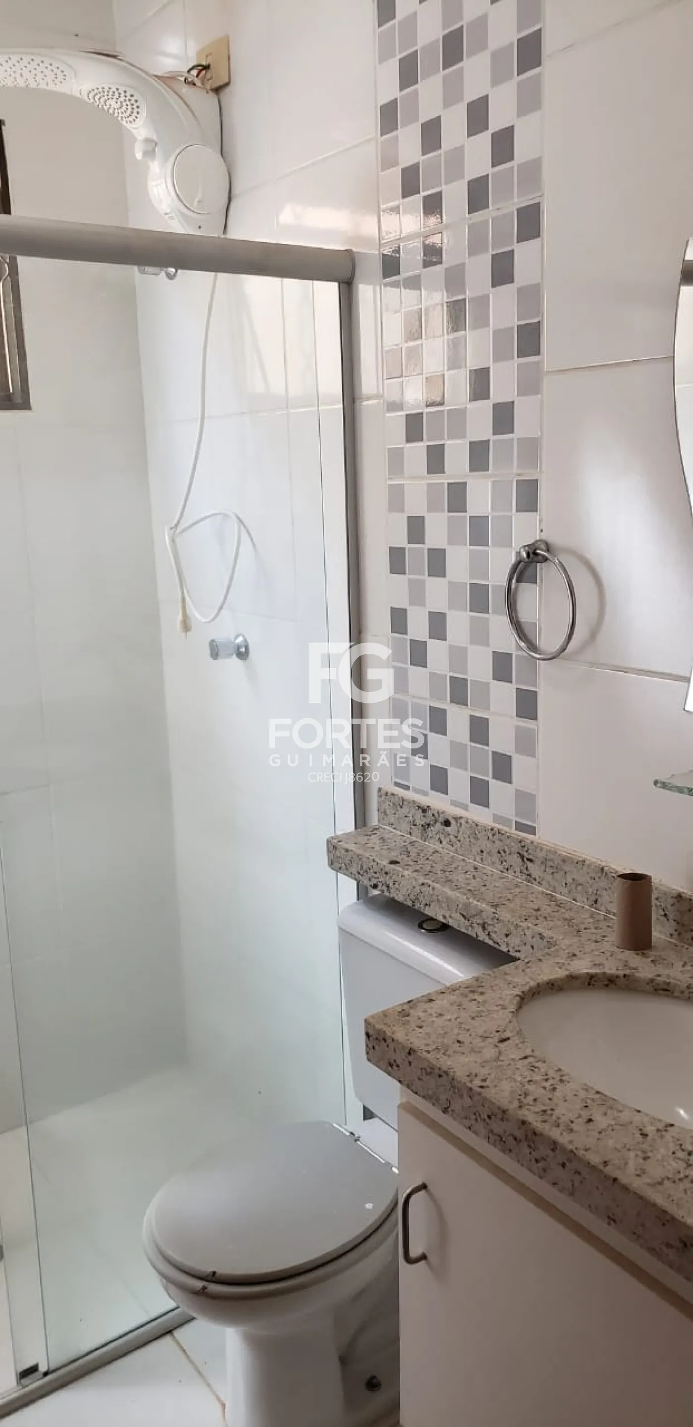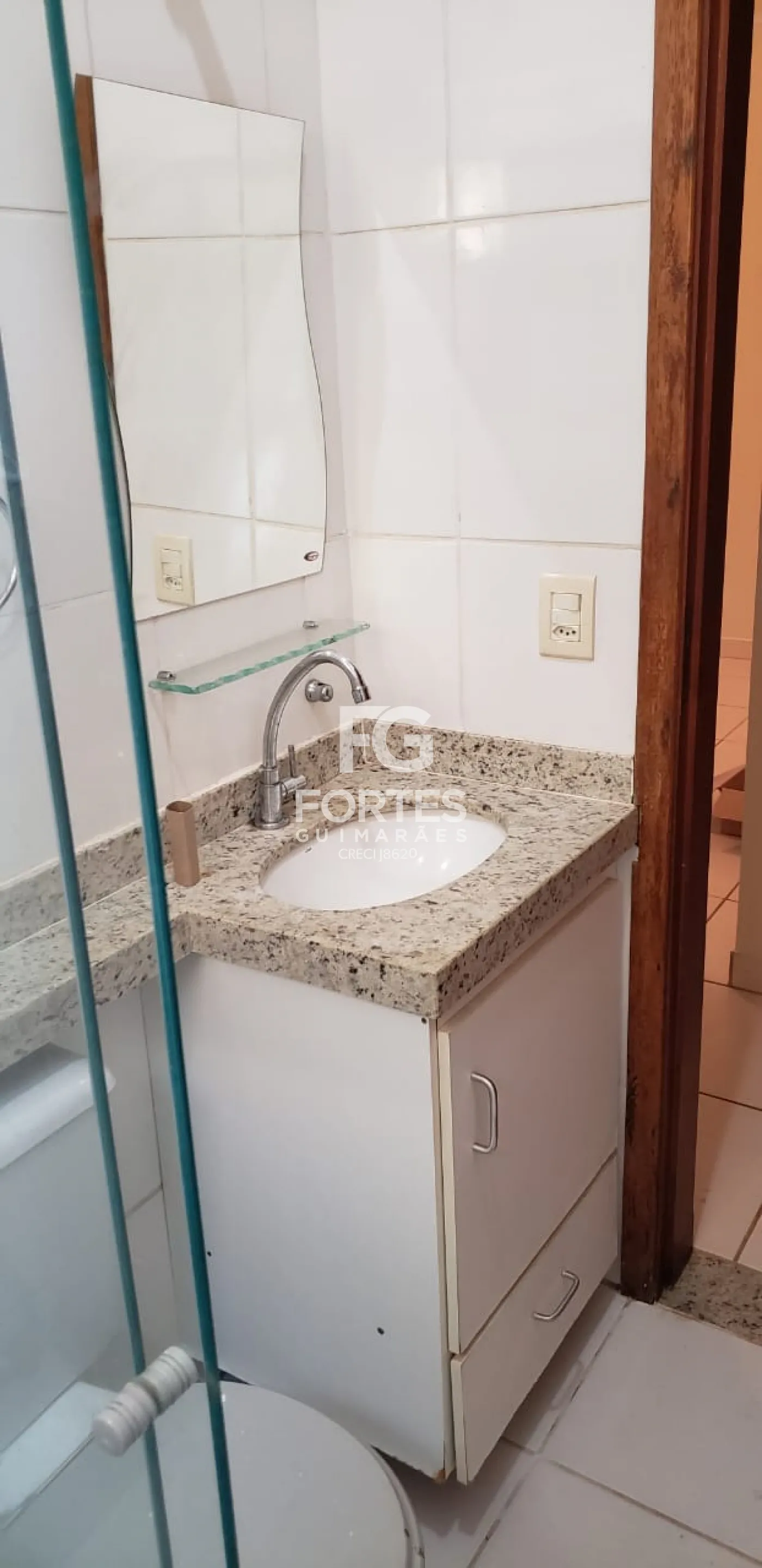 - Banheiro social com gabinete e box em vidro;