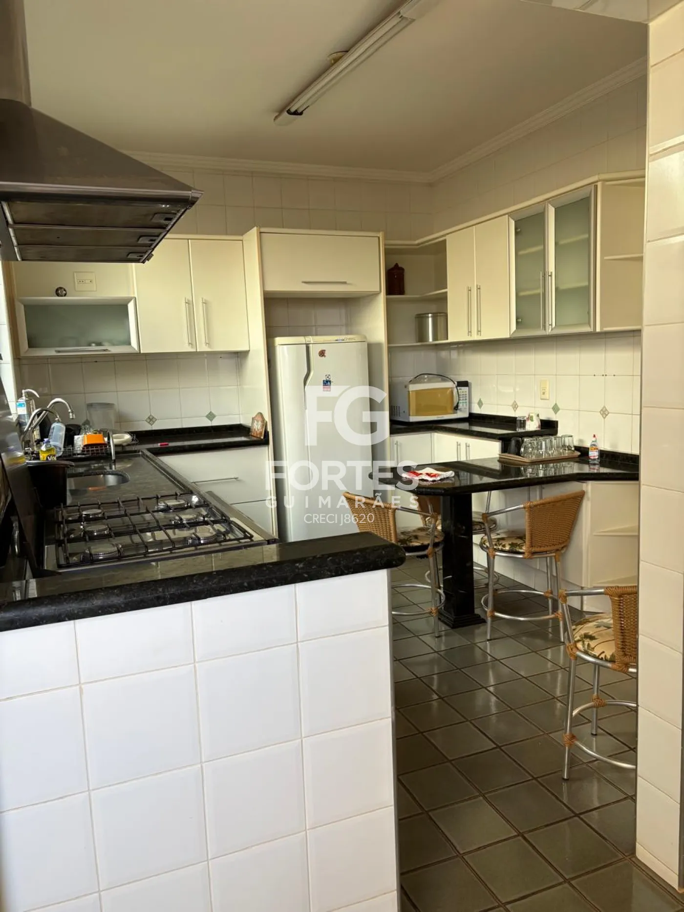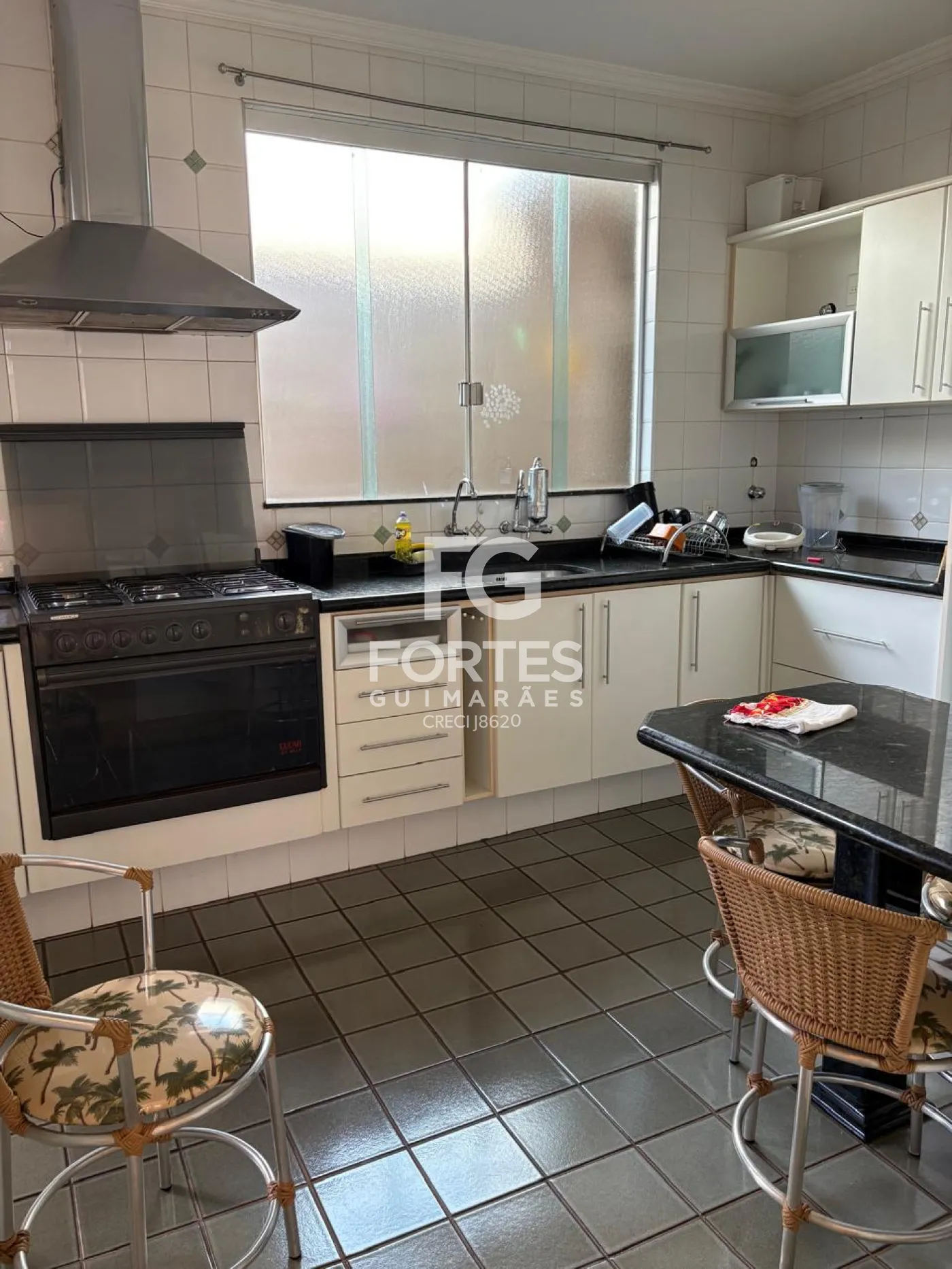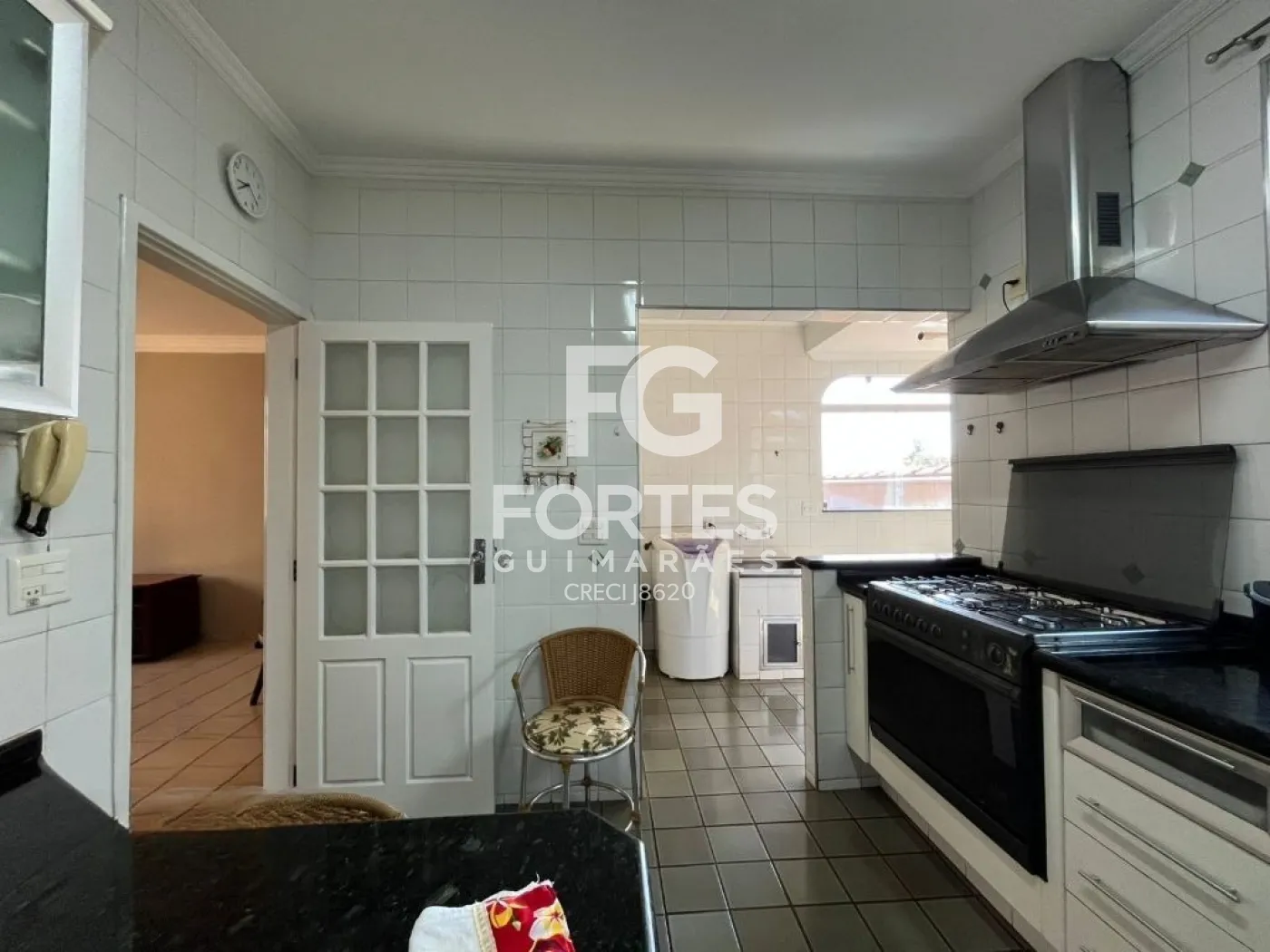 - Cozinha com armários, fogão, forno e coifa;