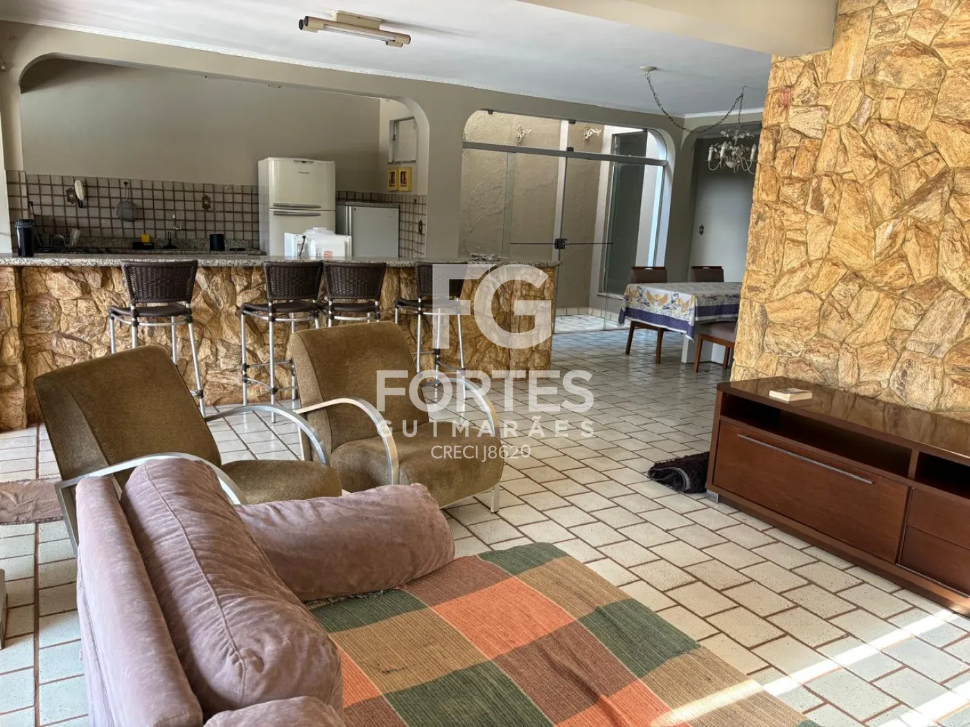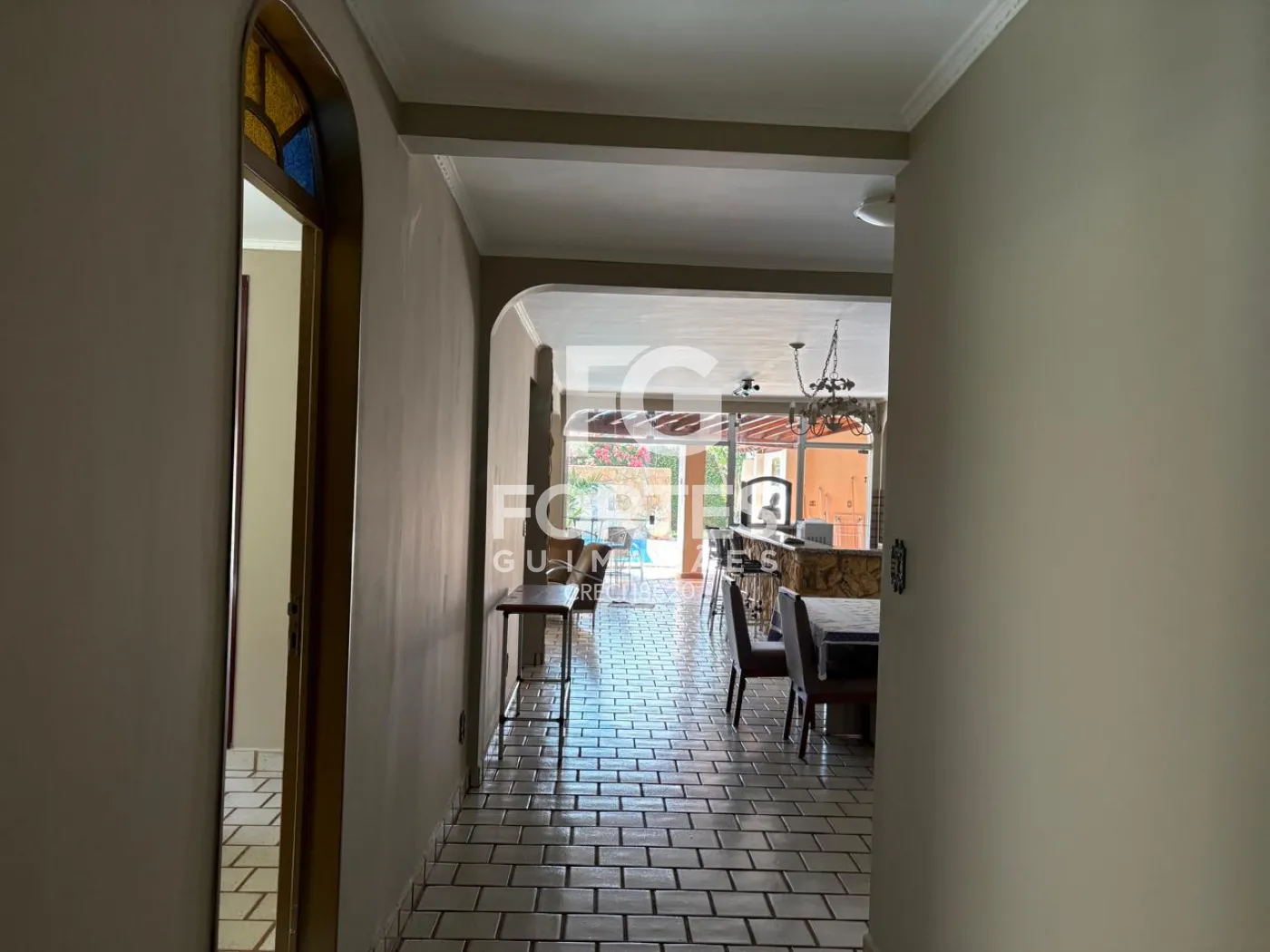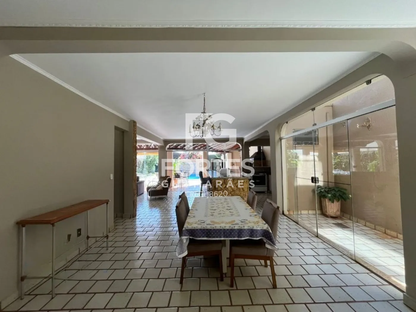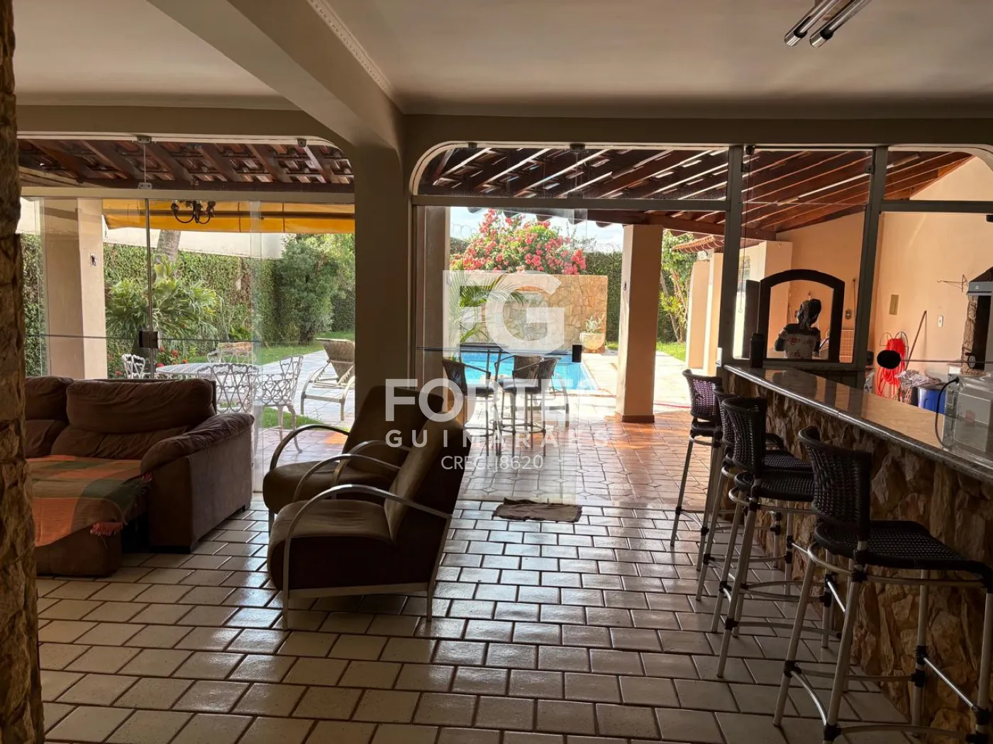-Amplo salão envidraçado com balcão;