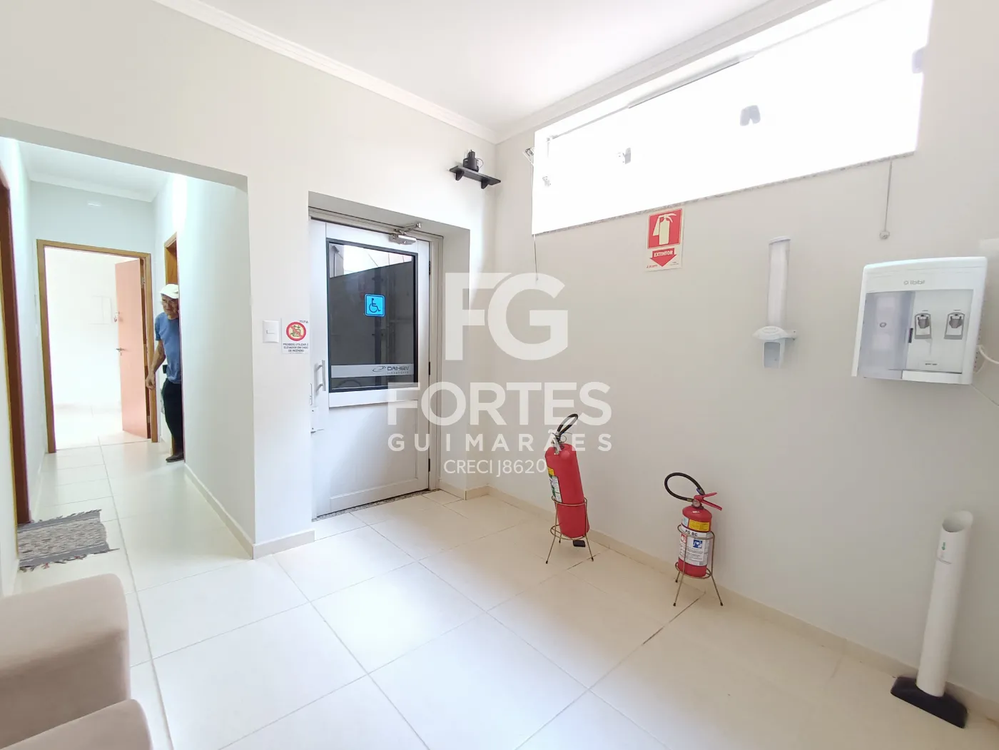 Sala de recepção, copa, hall superior, dois banheiros de uso comum, um em cada andar, sendo um acessível, rede Wifi, câmeras externas, alarme infravermelho passivo nas áreas comuns, bebedouro, elevador e 6 vagas nas calçadas, de uso comum dos clientes..