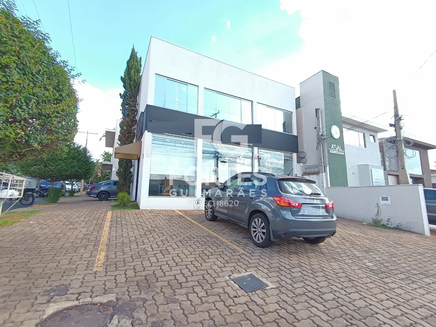Prédio de dois pavimentos de esquina, tem 6 vagas na calçada de uso comum dos clientes, rede wifi, sala de recepção, copa, alarme infravermelho, dois banheiros de uso comum, um em cada andar sendo 1 acessível, bebedouro e elevador de plataforma hidráulico.